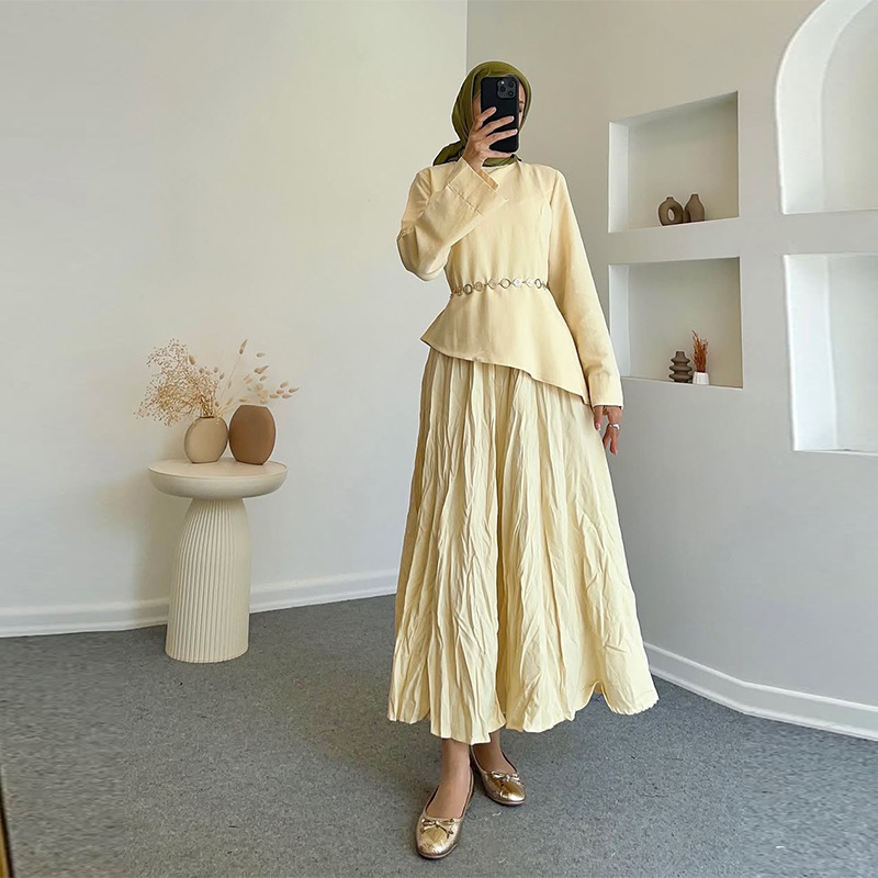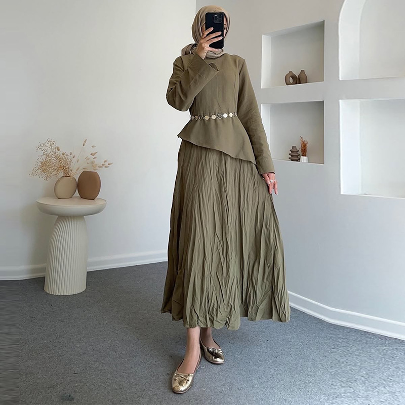 2025年に欧米アマゾンが国境を越えた対外貿易の新型女装はしわの長袖のストラップを結んで腰の純色のロングスカートを収めた