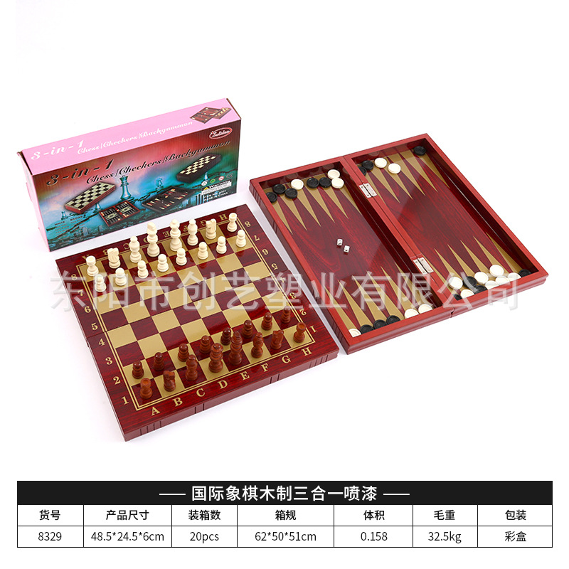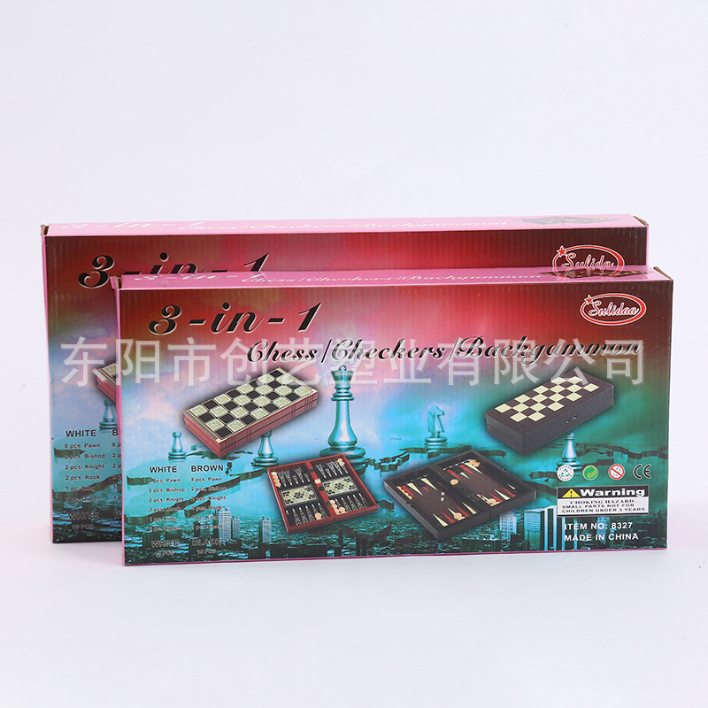 国境を越えたチェスメーカー卸売折りたたみスリーインワンスプレーペイントカラーボックスチェス盤セット知育玩具