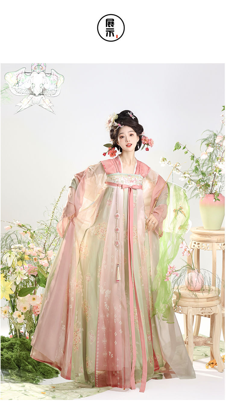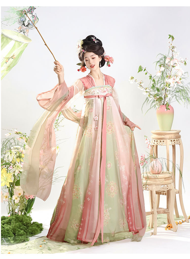 漢唐華雲オリジナル漢服女性用【春水陽】唐製胸丈スカート刺繍プリント夏デイリースタイル