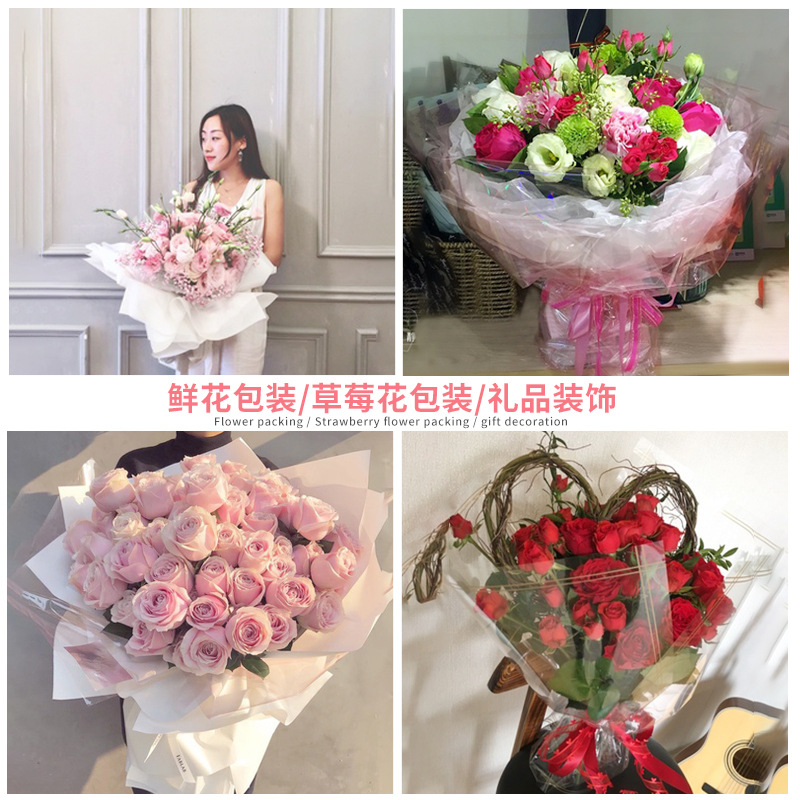 防塵透明フラワー包装紙印刷アートセロハンフラワー包装紙防水プラスチック紙フラワーショップブーケガラスロール