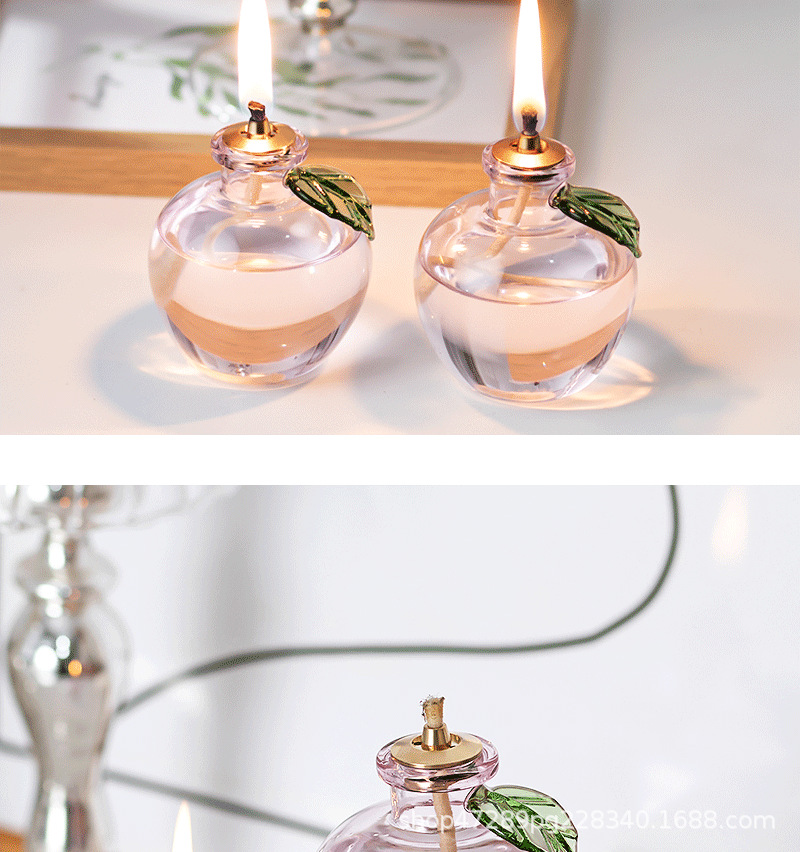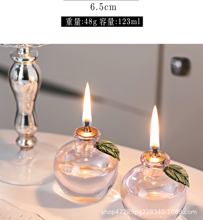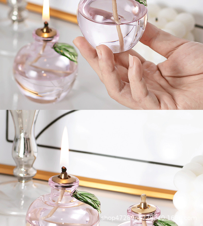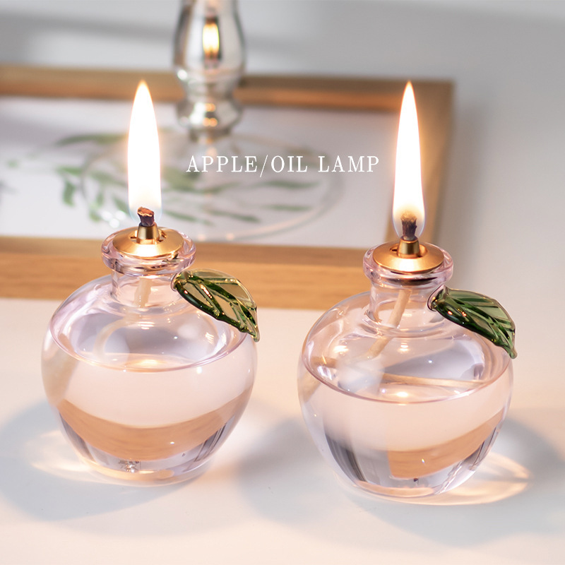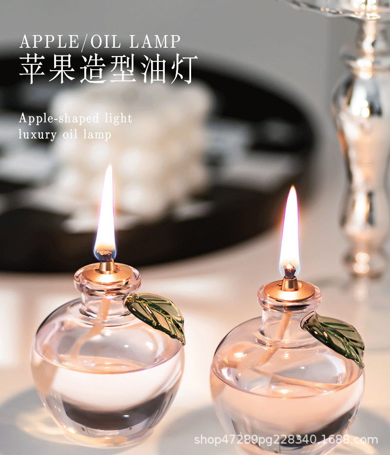 クリエイティブ透明アップルラウンドガラスオイルランプ燭台装飾品シンプルでモダンな家庭用茶道無煙オイルランプ