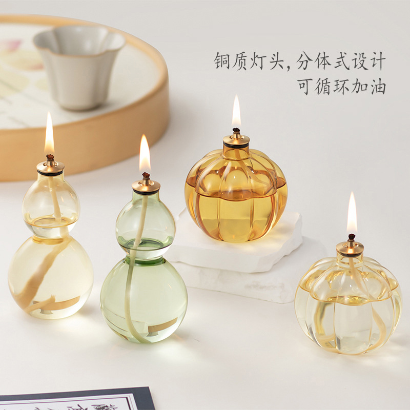 高硼硅创意玻璃油灯葫芦南瓜造型氛围感家用油灯简约风桌面摆件