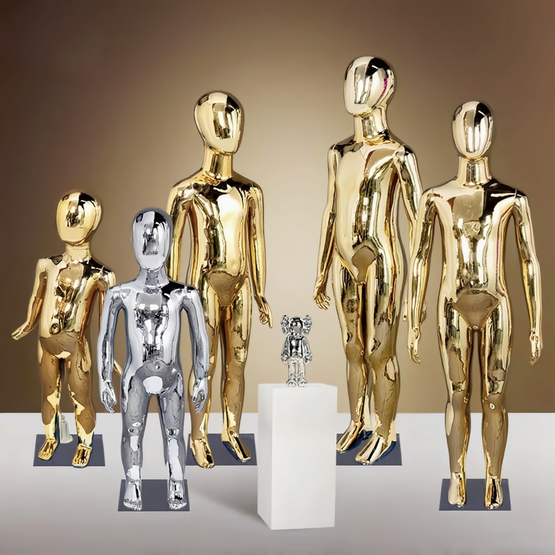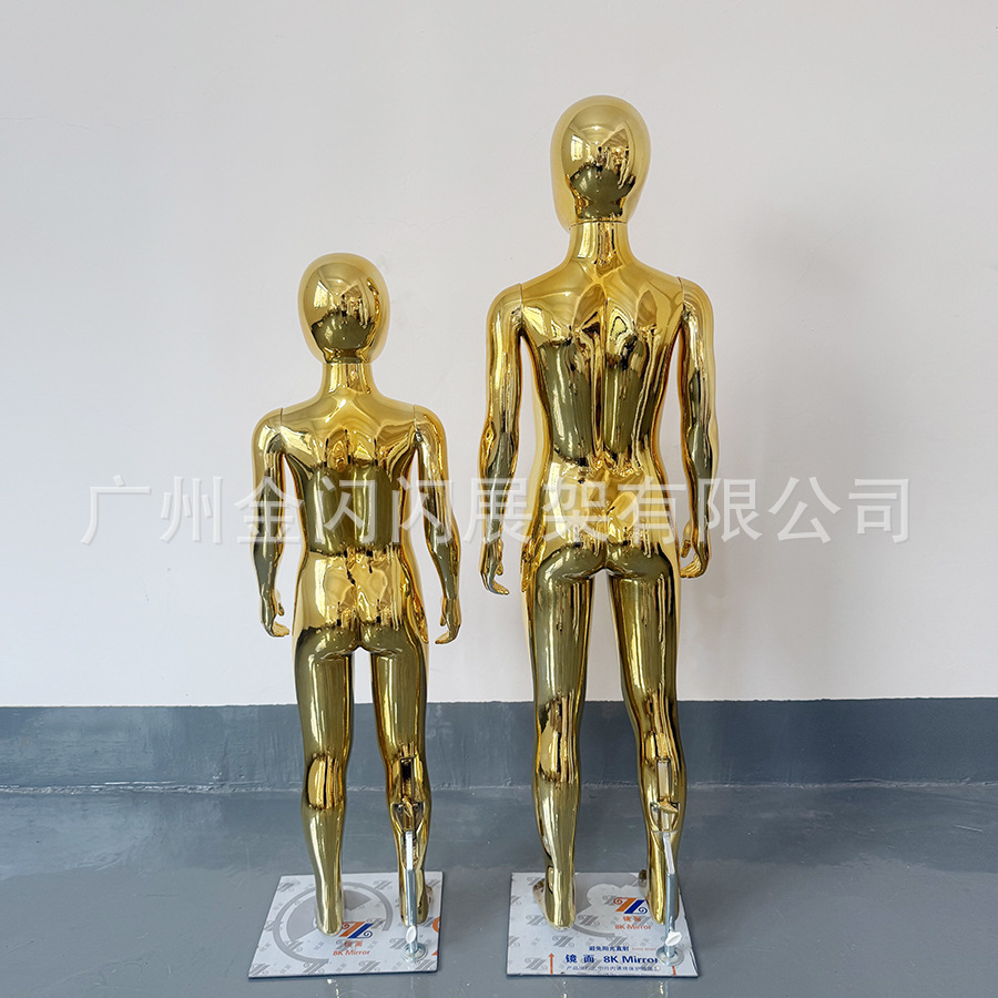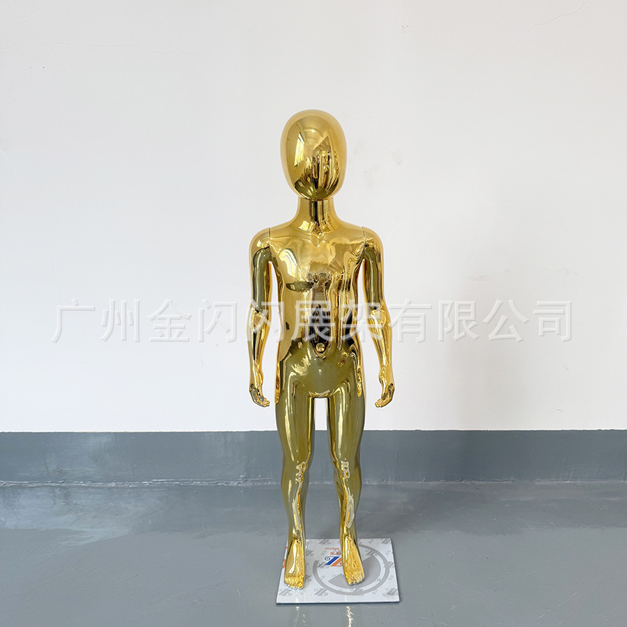 新しいハイエンド子供用電気メッキモデル小道具ゴールデンホワイト全身子供服店ディスプレイダミー衣類棚