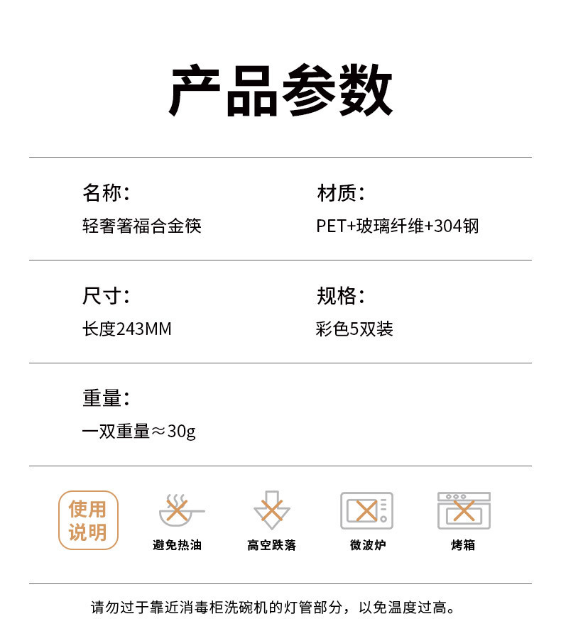 家庭用食器厳選 コミュニティ団購 ポップアップマーケット 新型24cmプラスチック金福合金箸10膳