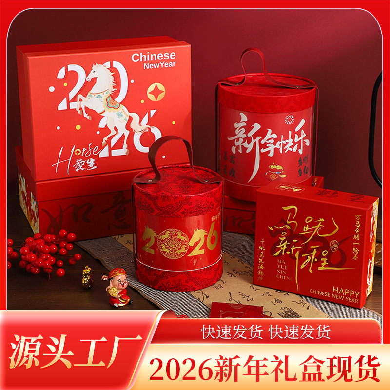 2026新款春节礼盒马年天地盖礼品包装零食大礼包手提礼盒现货批发