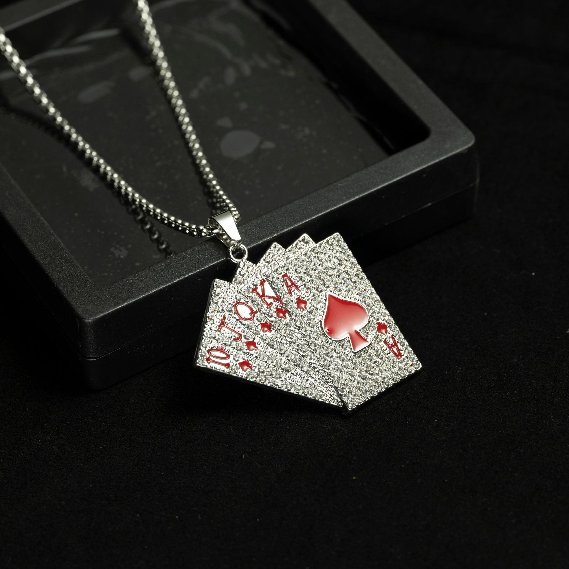 ファッションレトロダイヤモンドフラッシュポーカーボーイズネックレスディスコストリートヒップホップヒップホップジュエリートレンディなペンダント