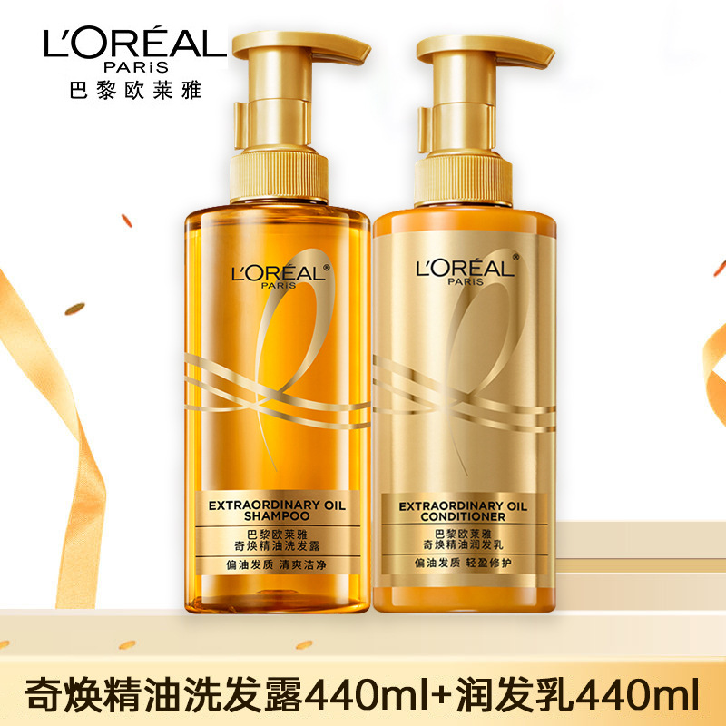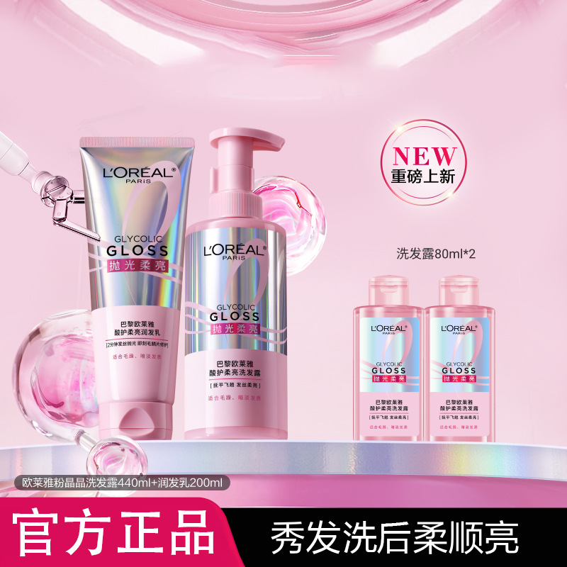 欧莱雅粉晶晶洗发水护发素440ml+200ml套装柔顺改善干枯毛躁受损