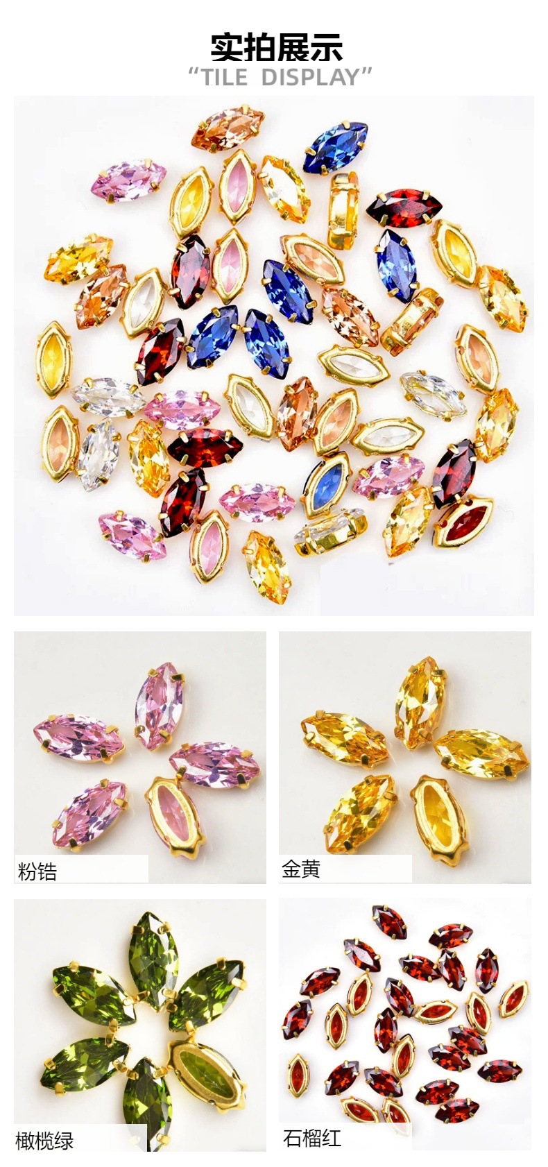 彩色3*6/4*8/5*10m马眼闪钻爪钻diy服装鞋饰婚纱包包饰品配件百搭