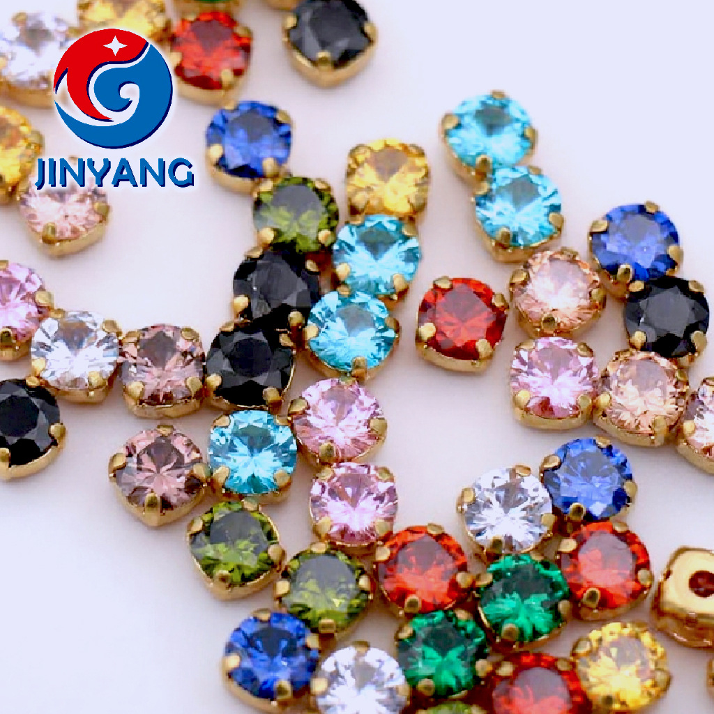高质量彩色锆石爪钻圆形尖底锆石叻色.金色单爪手缝钻服鞋DIY配件