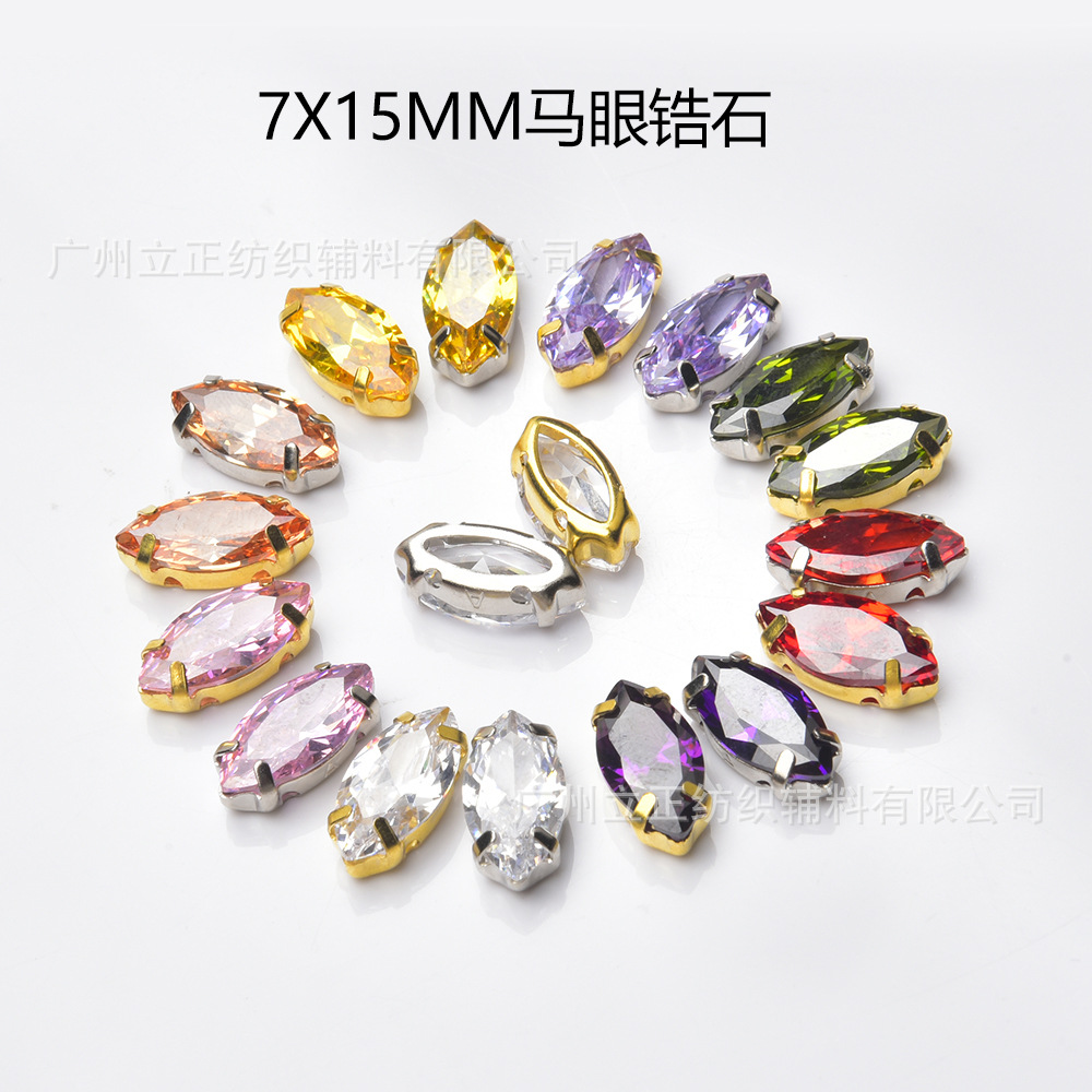 高品質5a級カラージルコン爪ドリル7*15mm馬眼尖底ジルコン金色爪手縫いドリルdiy部品