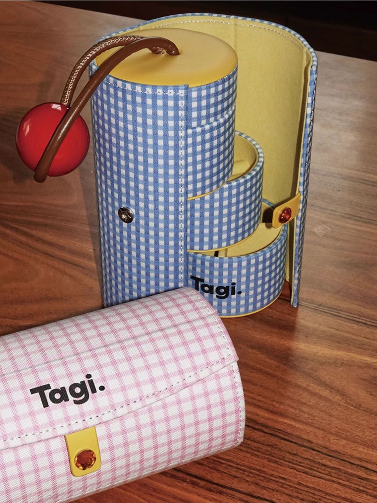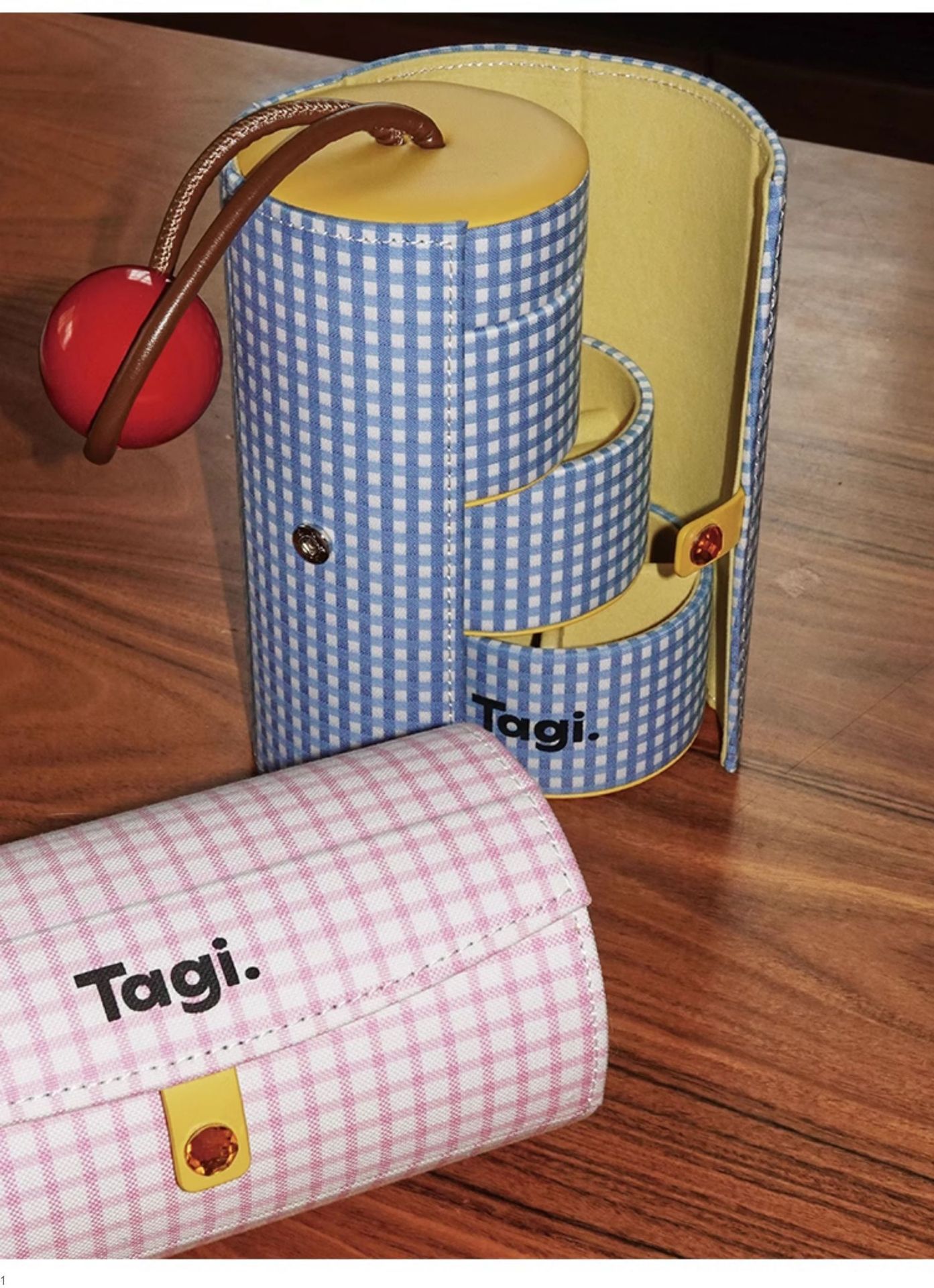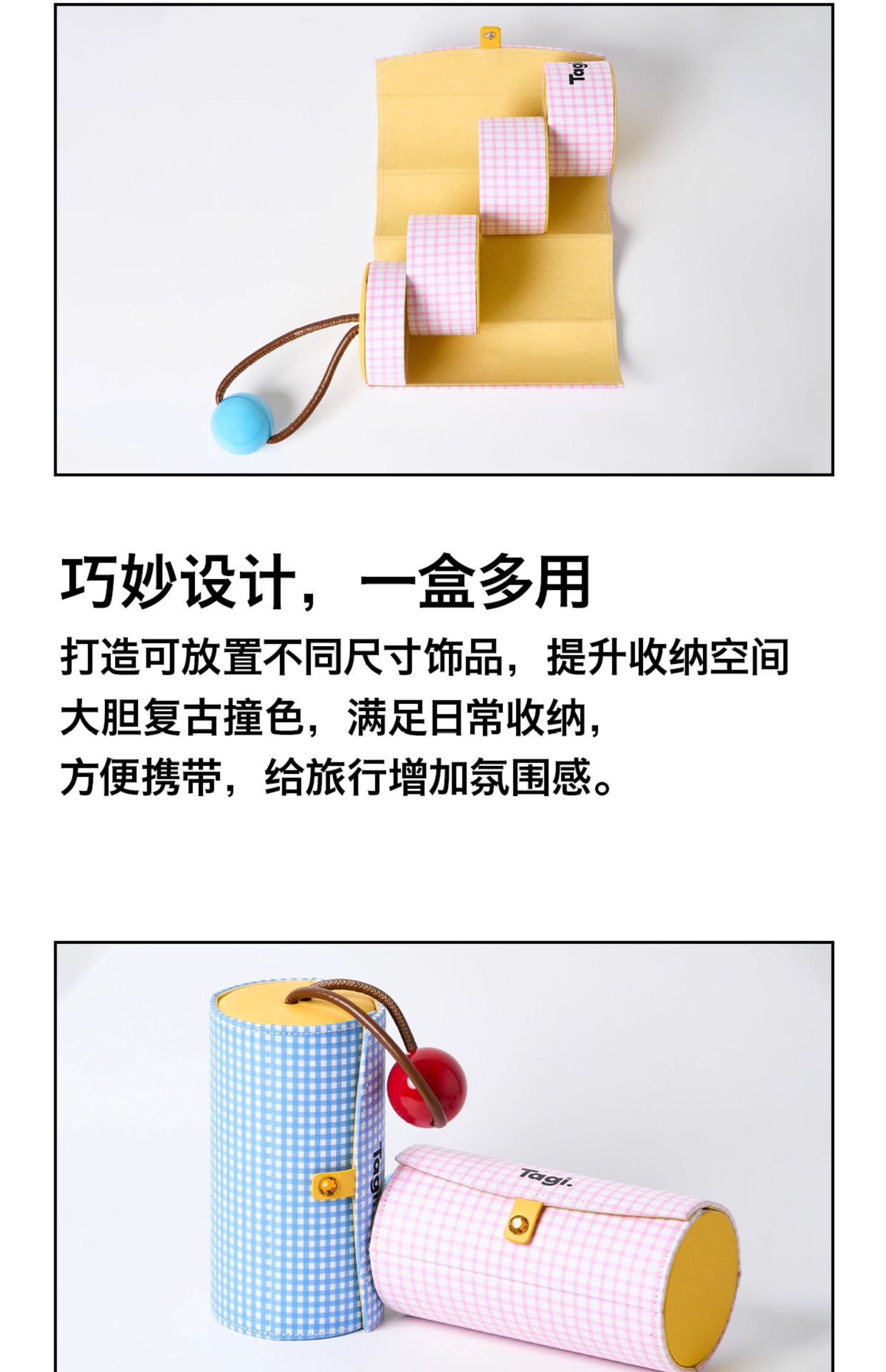 Tagi. 想象机灵信号面料多层旋转提手便携mini首饰盒化妆包收纳