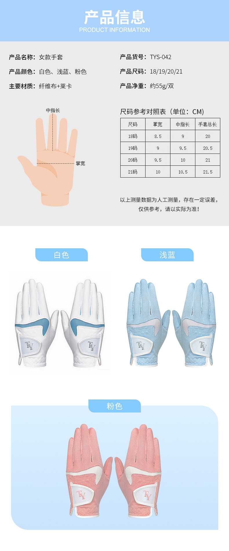 新しいゴルフ手袋女性の繊維布手袋柔らかく通気性のあるゴルフスポーツ手袋両手