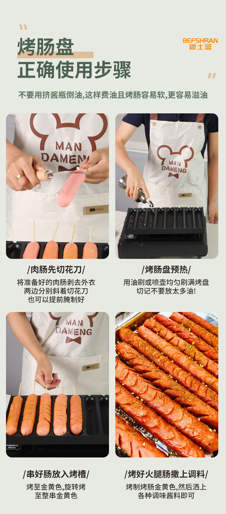 【碧士蓝】ネットで話題の焼きソーセージ機、屋台用業務用クリスピーソーセージ機、ホットドッグ、角型ソーセージ、卸売