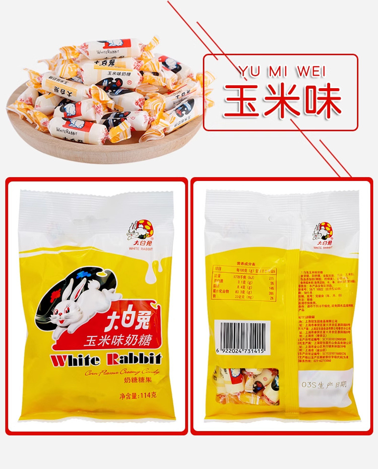 卸売り上海冠生園大白兎114g原味袋スナック年物プレゼント結婚祝い砂糖