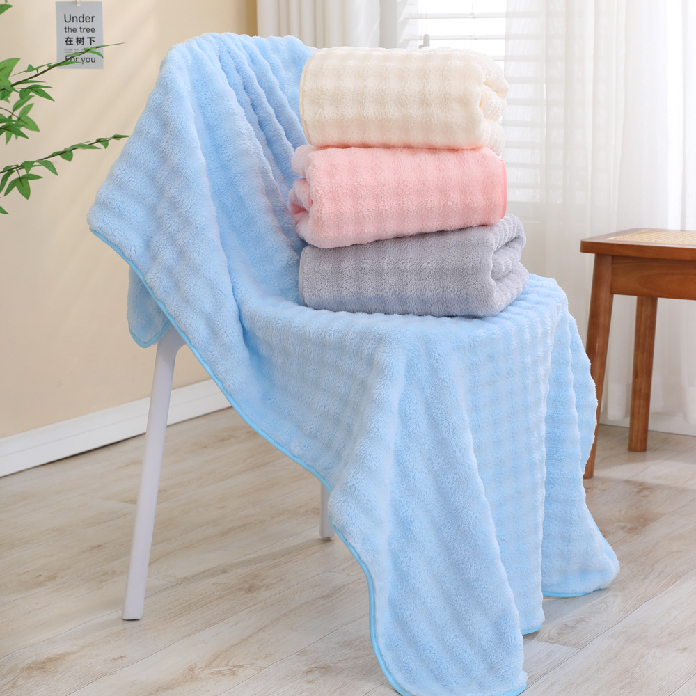 クロスボーダーコーラルベルベットバスタオル、特大・厚手、バブルベルベット、カップル用、吸水速乾、柔らかく毛抜けにくい、大人用ラップタオル