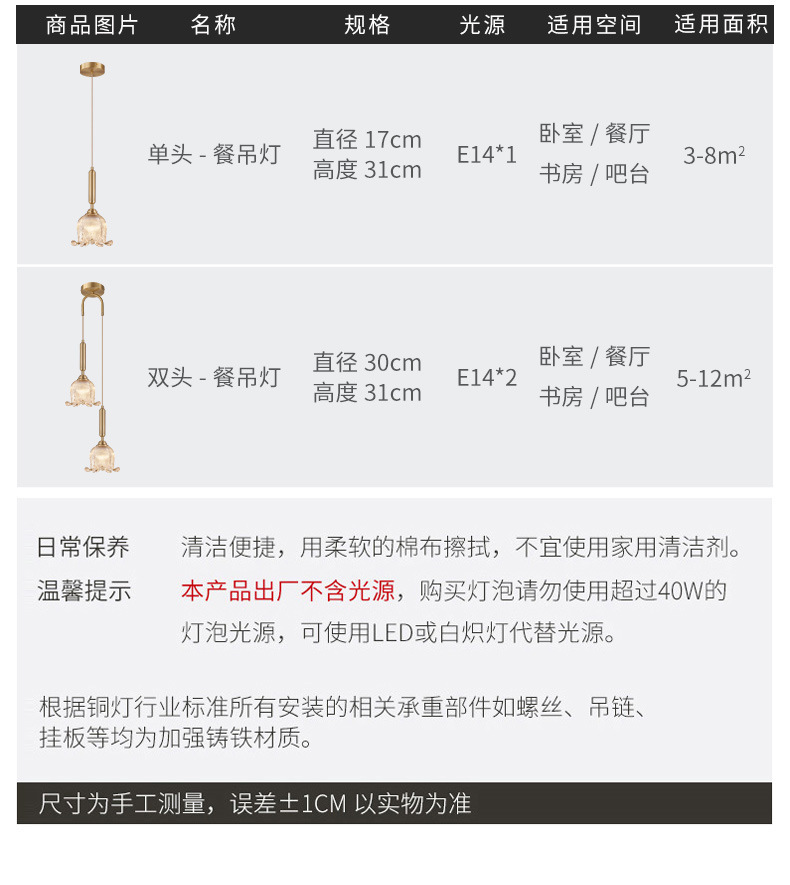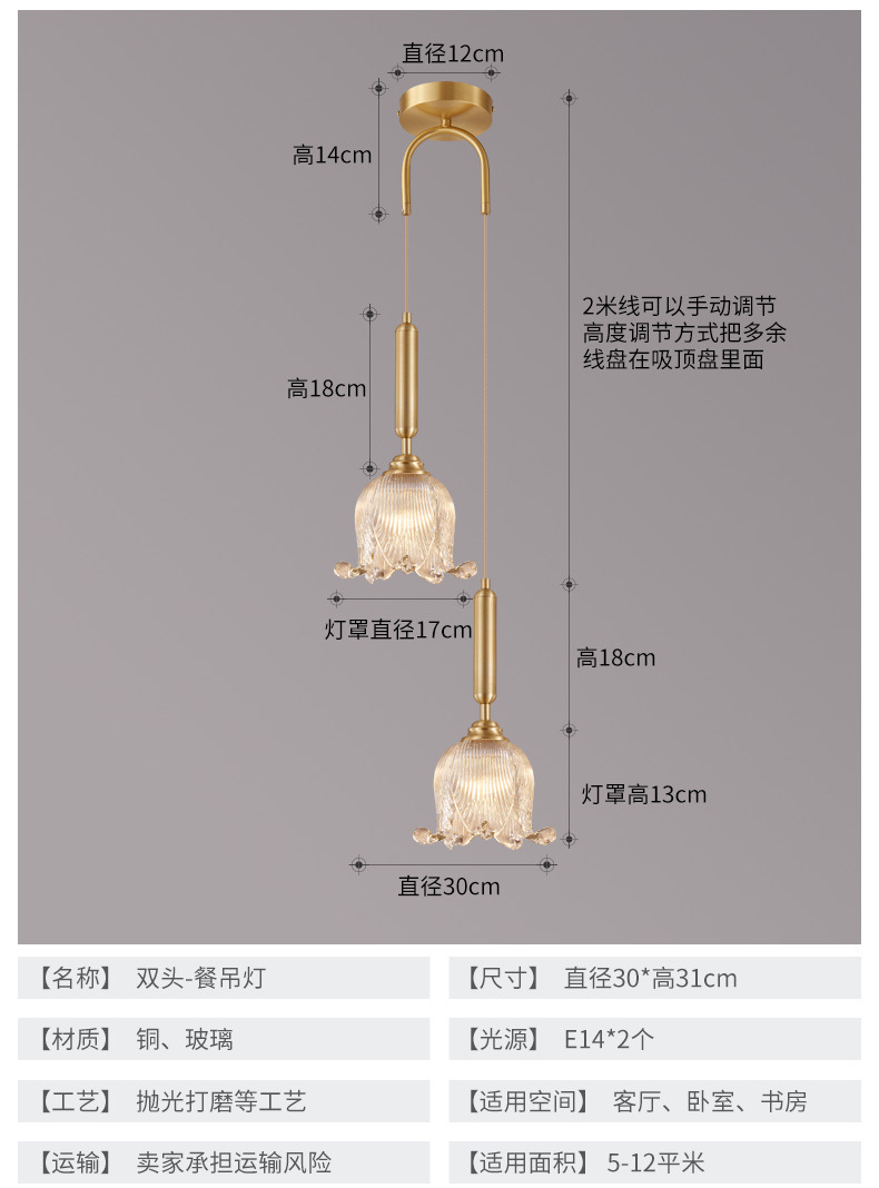 アメリカンライト高級全銅レストランランプシャンデリアバーランプシンプルモダンクリエイティブダイニングルームベッドルームベッドサイドランプ66727