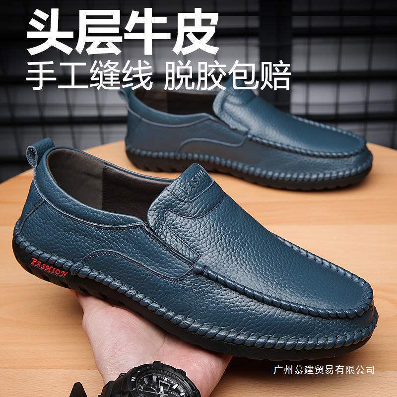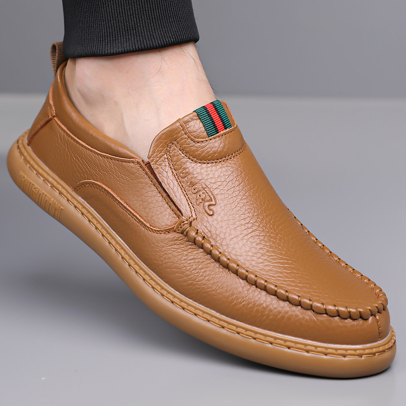 2025春秋男士皮鞋头层牛皮透气休闲鞋软底软皮一脚蹬套脚男鞋5188