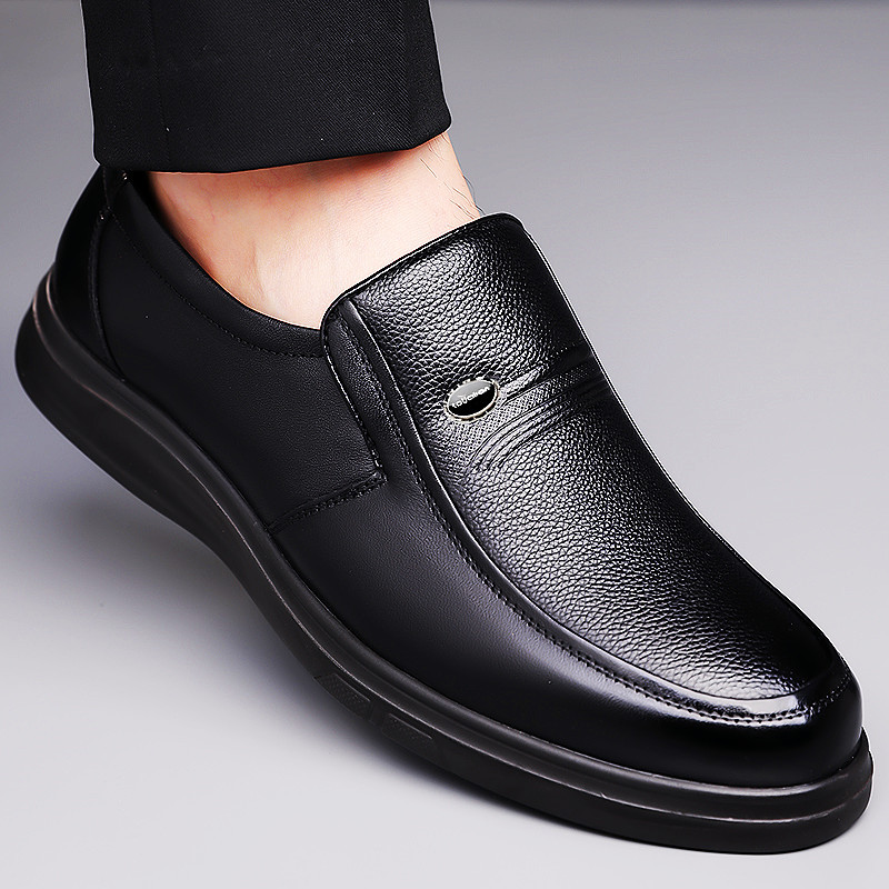 革靴本革メンズビジネスカジュアルシューズトップ層牛革通気性春秋中年男靴ソフト底靴パパ男