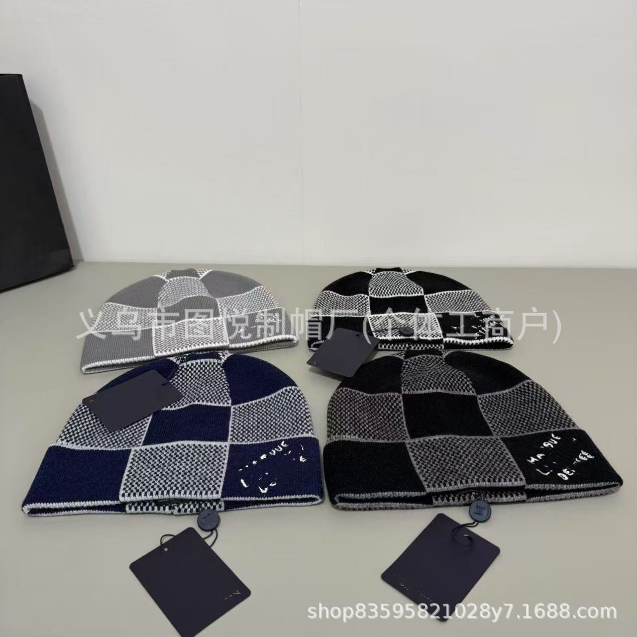 秋冬の新作小格子V字ウール帽子の正しいバージョン、ネットセレブカジュアルで万能な防寒帽子、暖かいニット帽