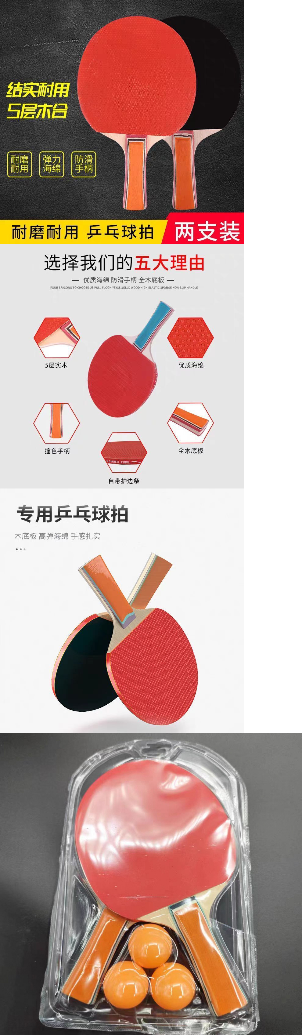 素晴らしい仕上がり + 厳格な職人技 + パフォーマンスラケット + 試合を爆発させる - ラケット 1 組 + 卓球ボール 3 個