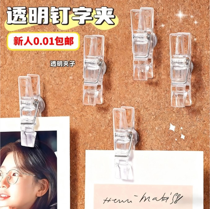 迷你透明图钉夹子小图钉学生幼儿园专用按钉软木板毛毡板固定照片