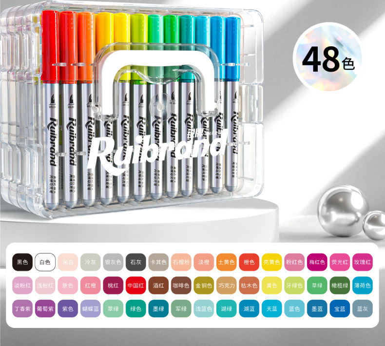 48色单头直液式Brush软头美术学生速干不掉色丙烯马克笔跨境批发