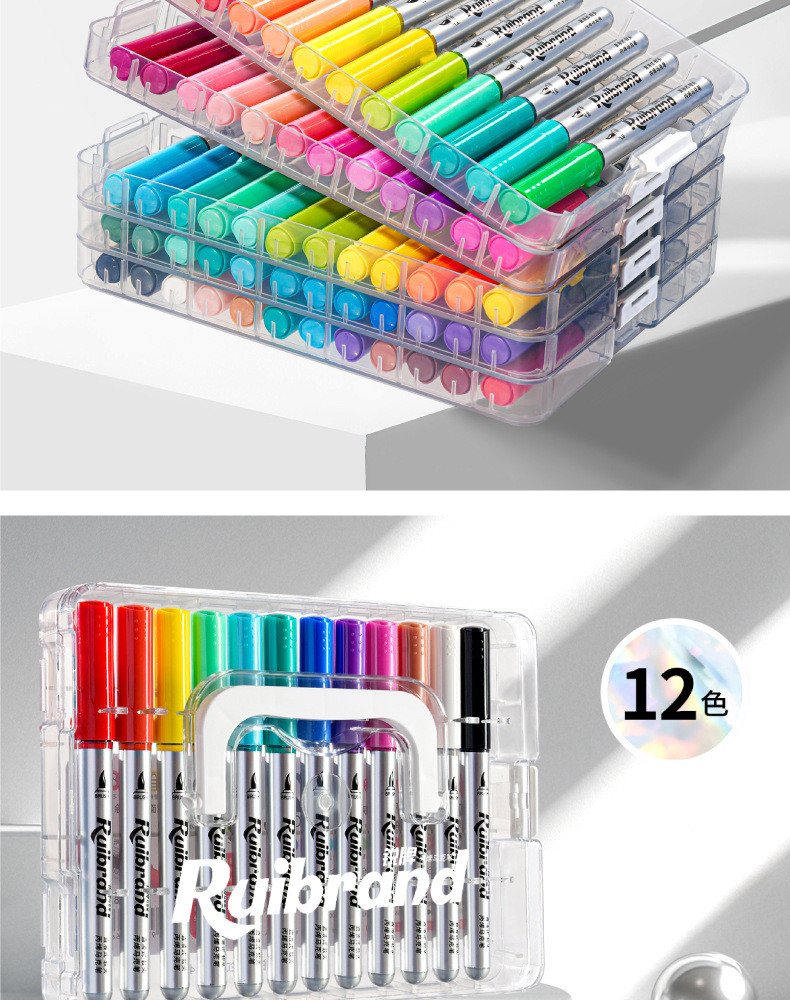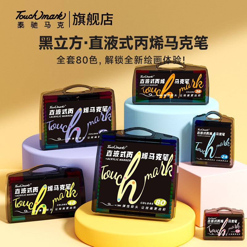 直液式丙烯马克笔软头学生美术48色水彩笔不透色可叠色12色画笔