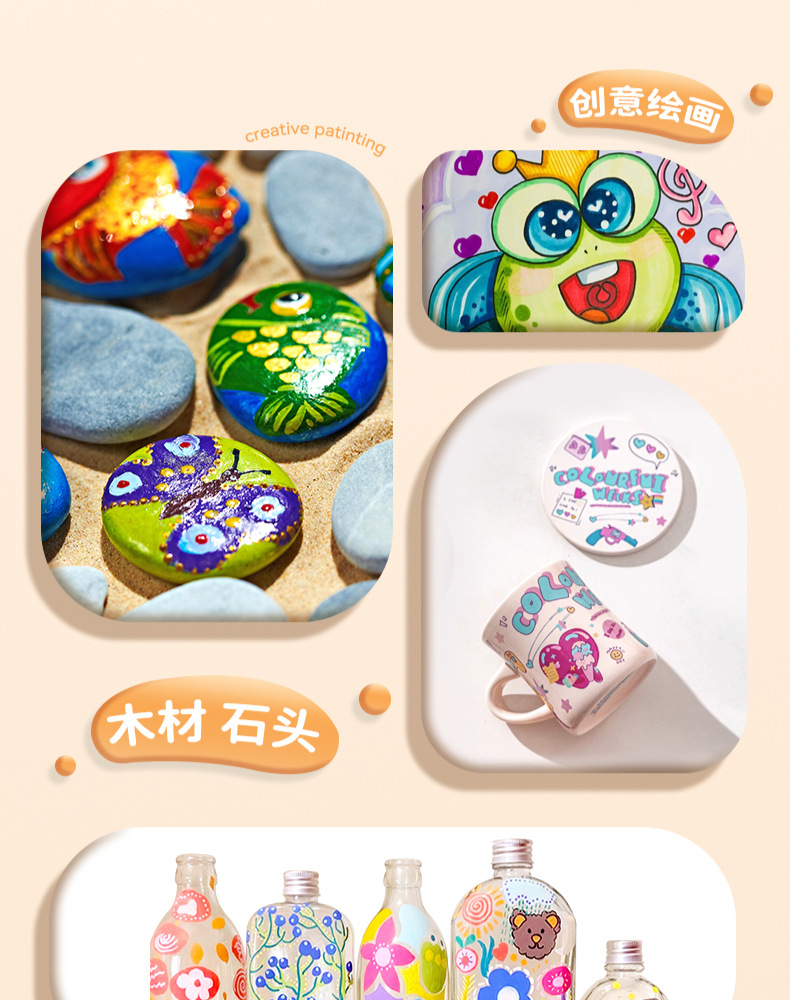 アクリルマーカーペン子供用非毒性、洗える、小学生アート水彩ペン、不透明、積み重ね可能なカラーブラシ
