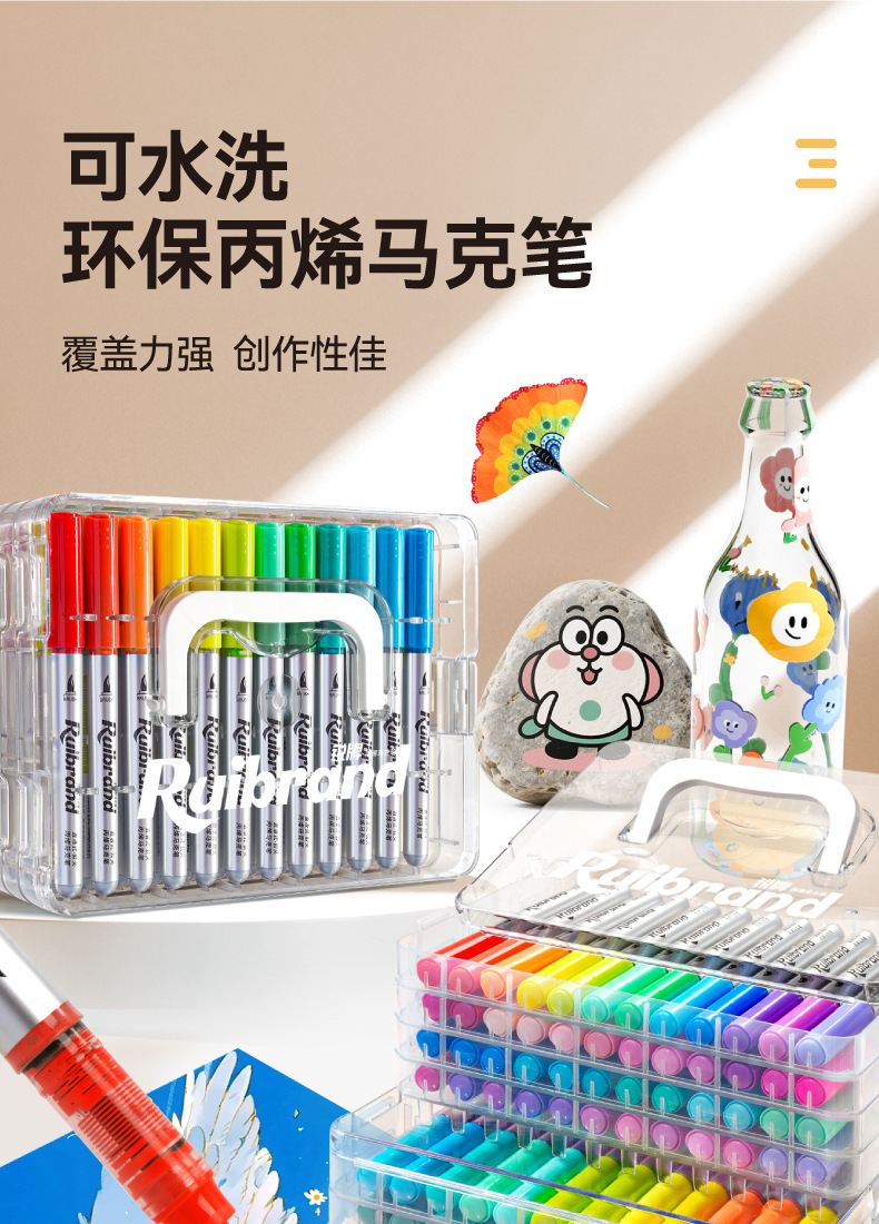 直液式丙烯马克笔美术专用小学生可叠色画笔儿童水彩笔绘画彩色笔