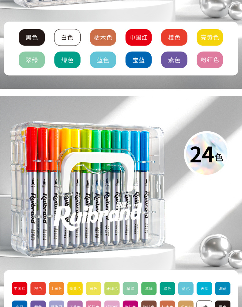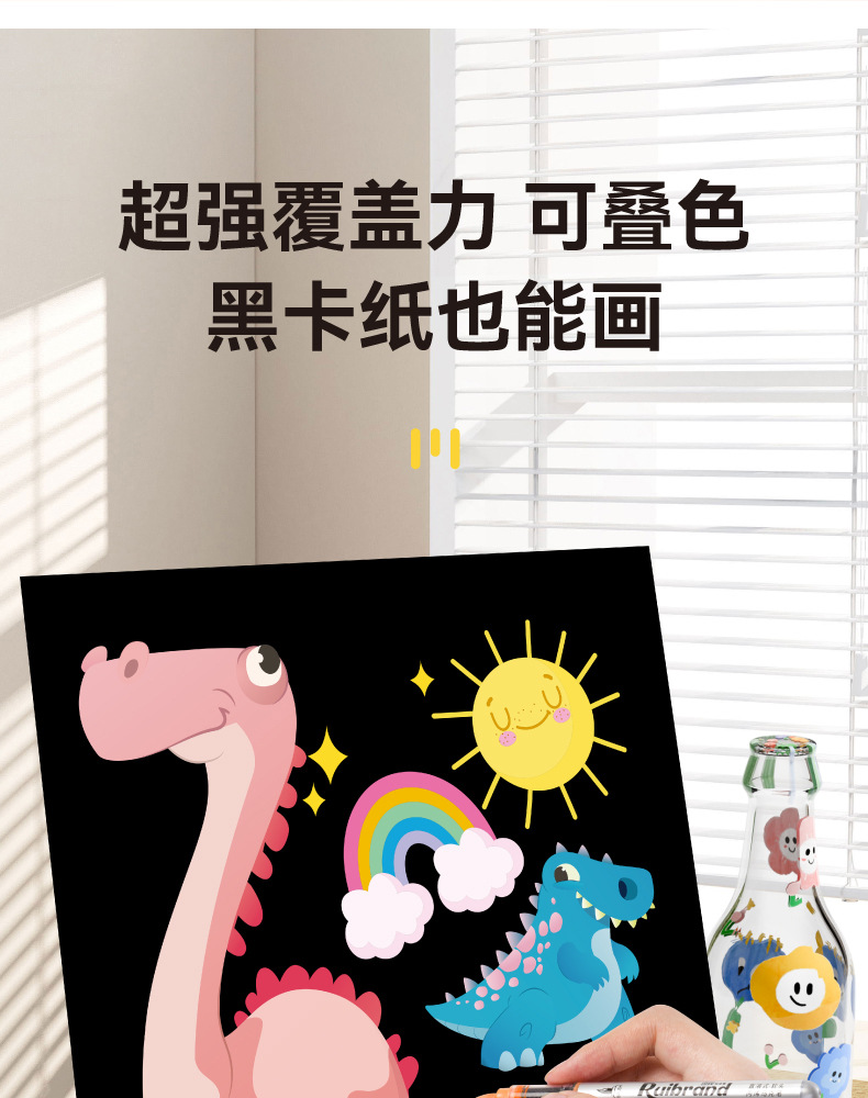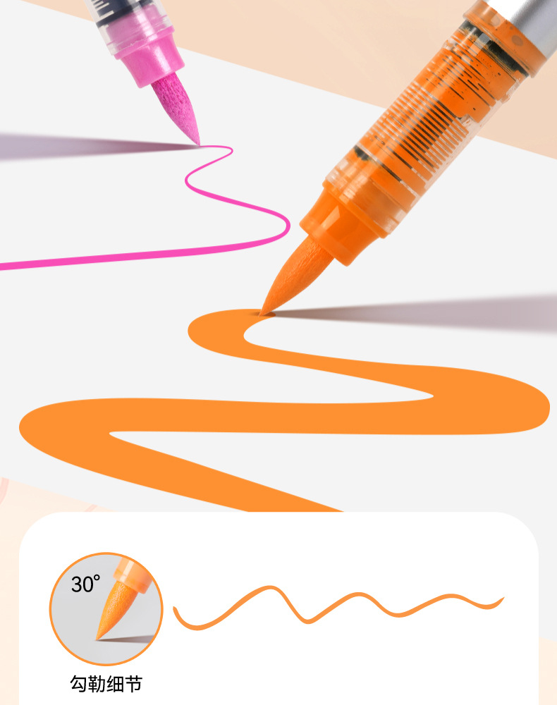 佳幕不透色可叠色软头小学生画画直液式墨量超大容量丙烯马克笔