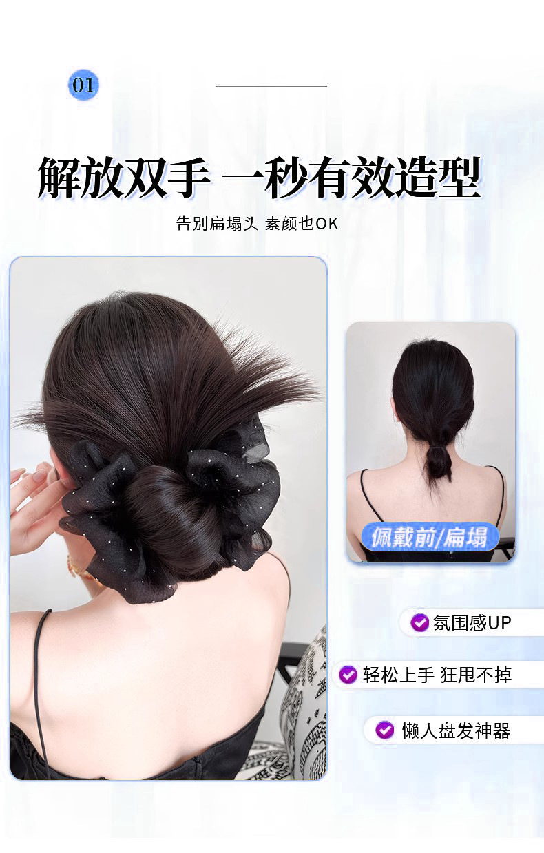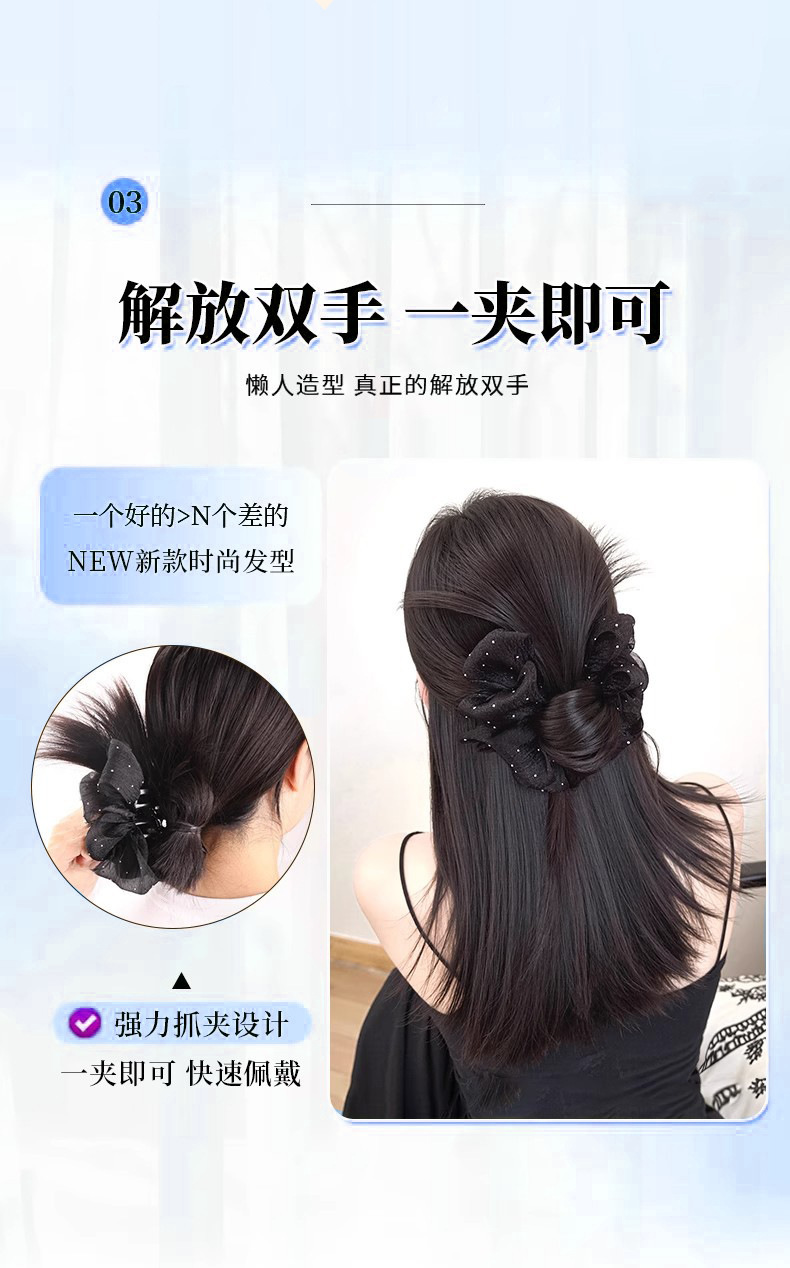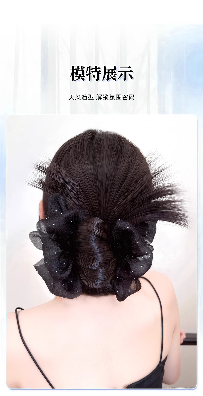 假发女网纱鸡毛碎钻蝴蝶结丸子头慵懒感盘发蓬松满天星后脑勺发包