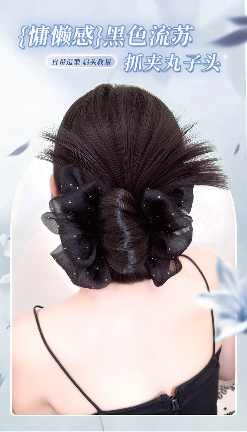 抓夹鸡毛丸子头假发蝴蝶结花苞头女低扎懒人神器自然蓬松新款盘发