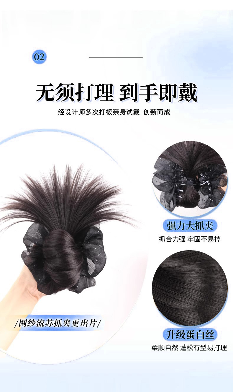 丸子头假发抓夹女低扎花苞龙须丸子头发圈一体式日常盘发饱满后脑