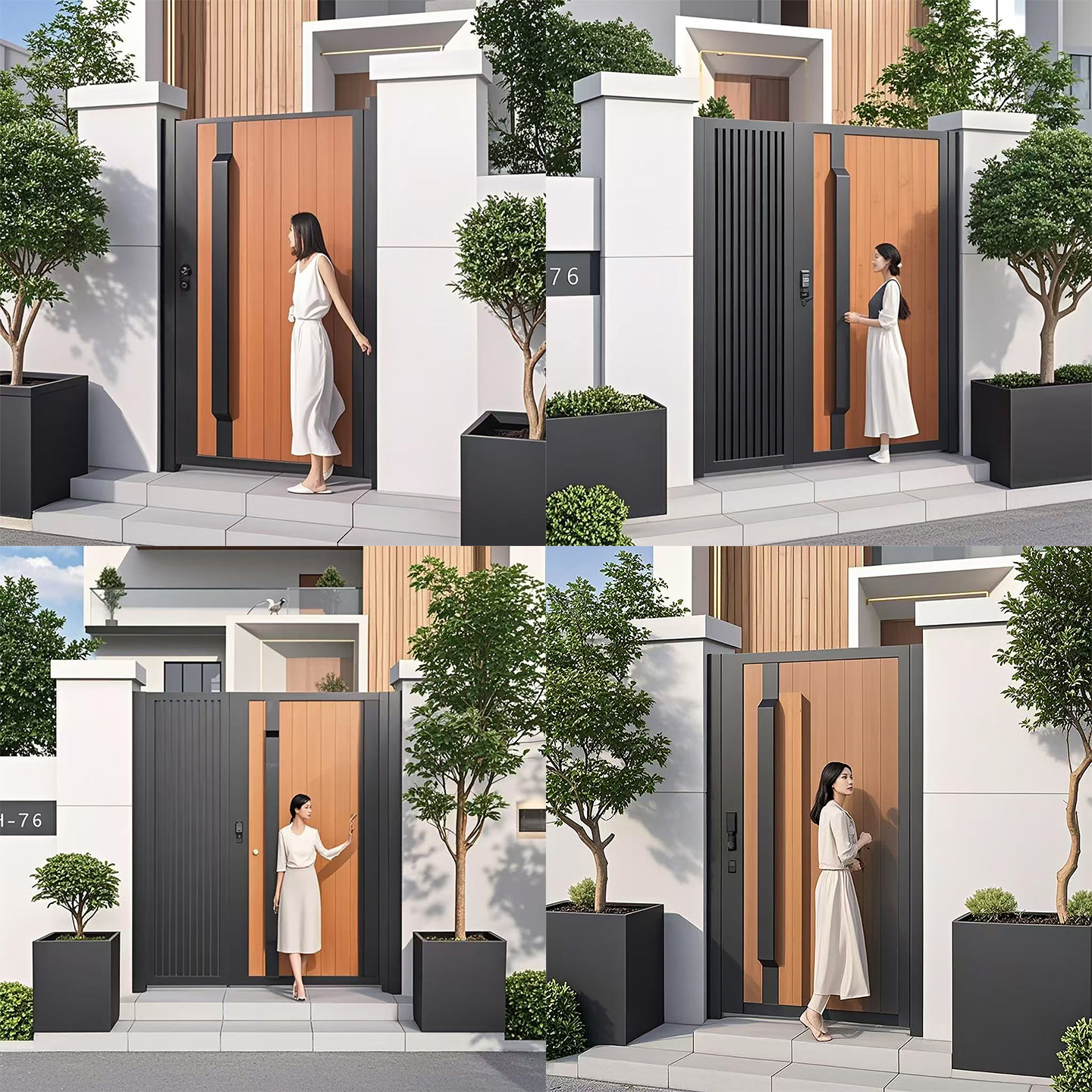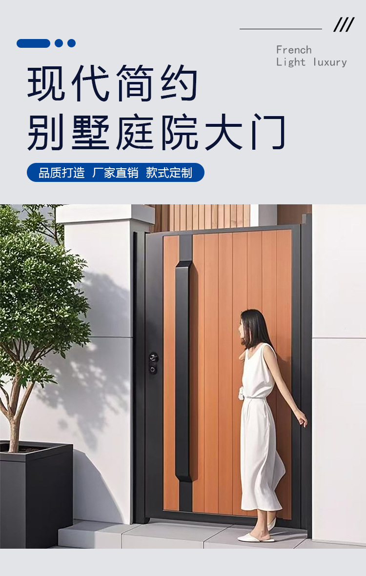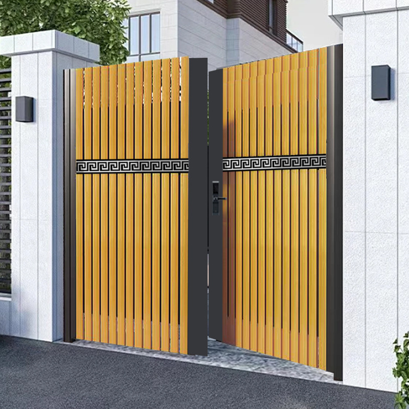 モダンでシンプルな焼き木目調中庭ドアヴィラ工場直販品質アルミニウム合金シングルおよびダブルオープンガーデンドア