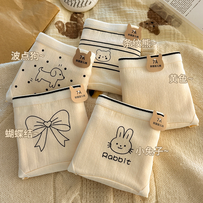 女性の純綿下着抗菌抗菌ミッドウエスト延長股下かわいい漫画女性綿股下学生女の子ブリーフ