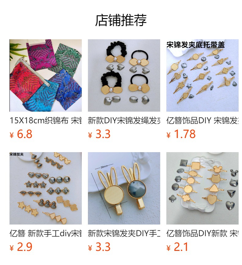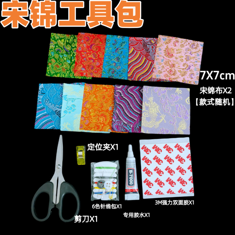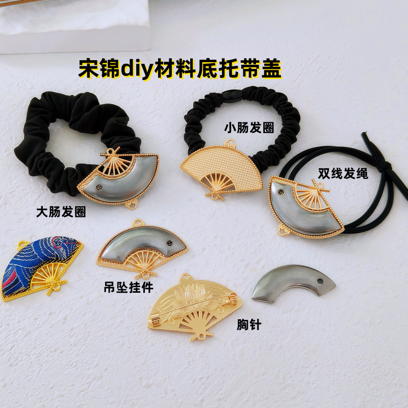 亿簪饰品DIY非遗宋锦手工diy扇子发绳 胸针压襟吊坠 底胚带盖材料