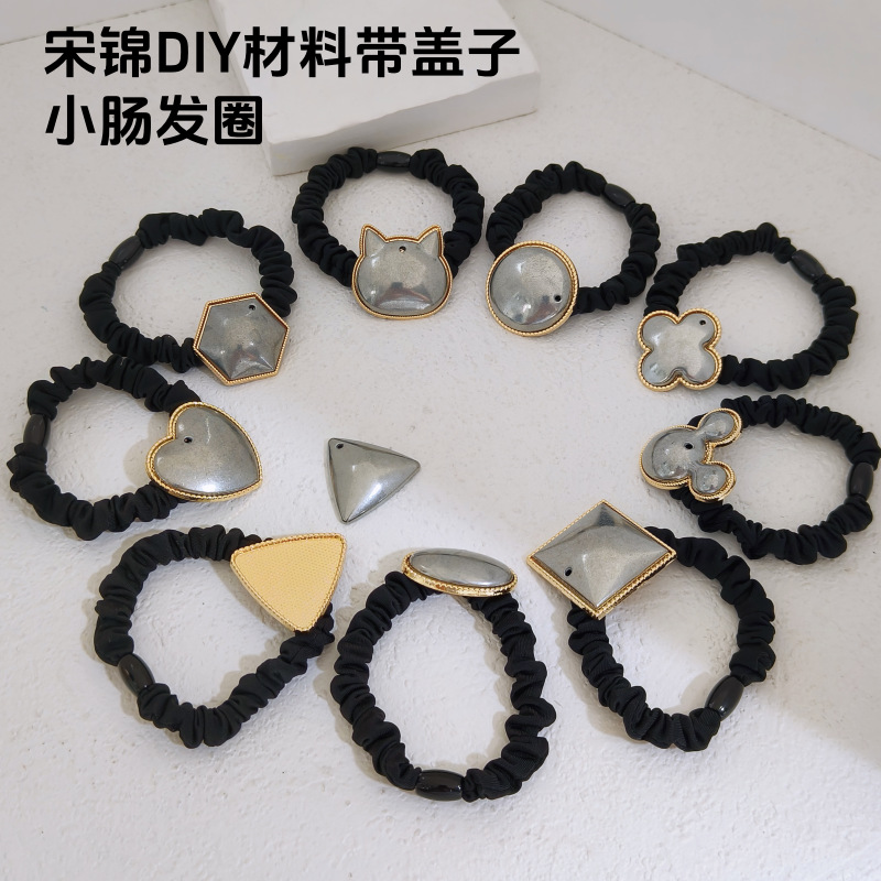 宋錦DIYベース、蓋付き、小腸ヘアリング、猫頭四つ葉のクローバーヘアリング、ヘアピン素材、新しい中国風手作りヘアアクセサリー