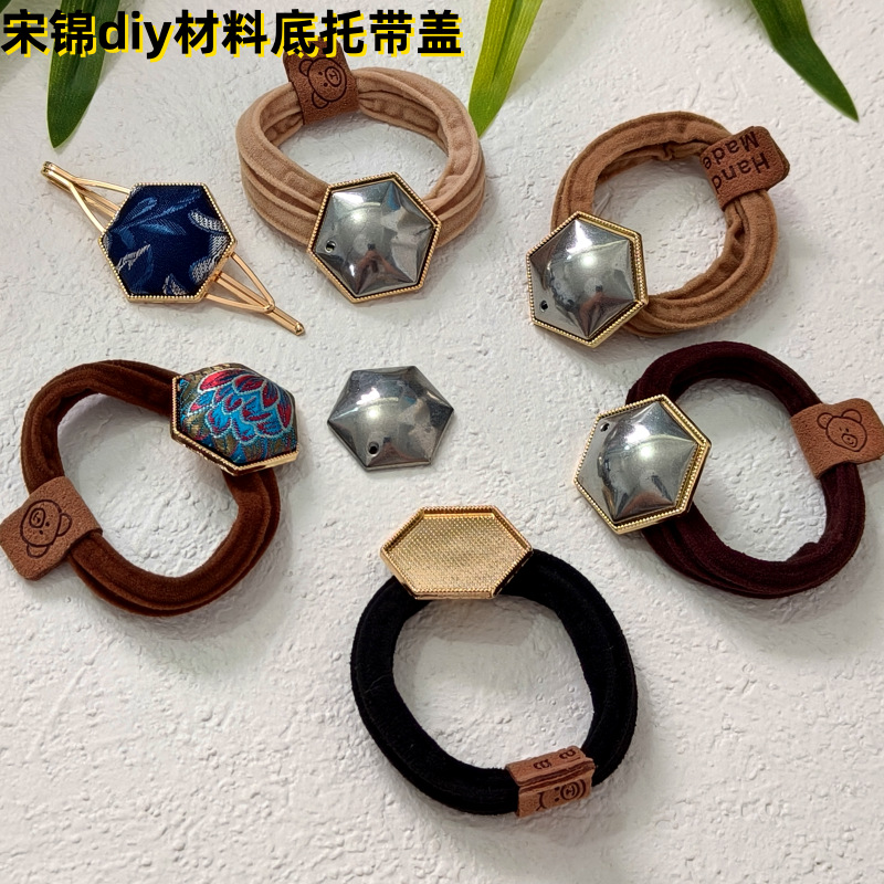 亿簪饰品diy宋锦底托带盖 宋锦发绳可爱发圈凹槽底托包布手工材料