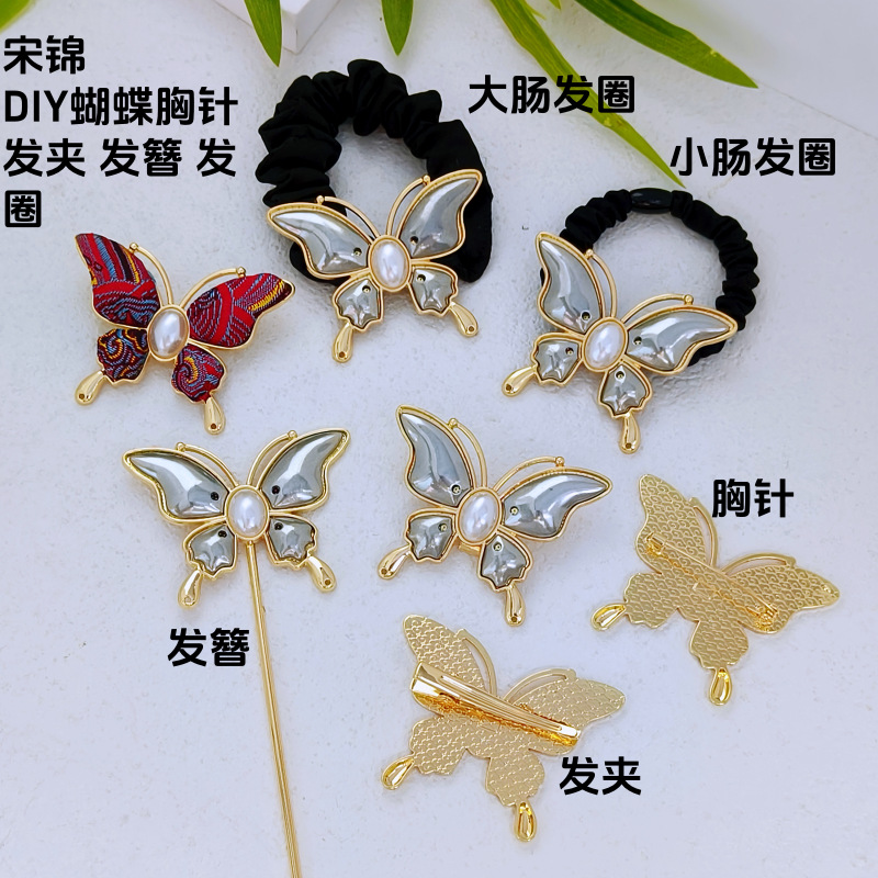 Yizan ジュエリー DIY 宋錦ヘアピン d 底胚カバー蝶ブローチヘアピンヘアピンヘアバンドステッカー生地素材