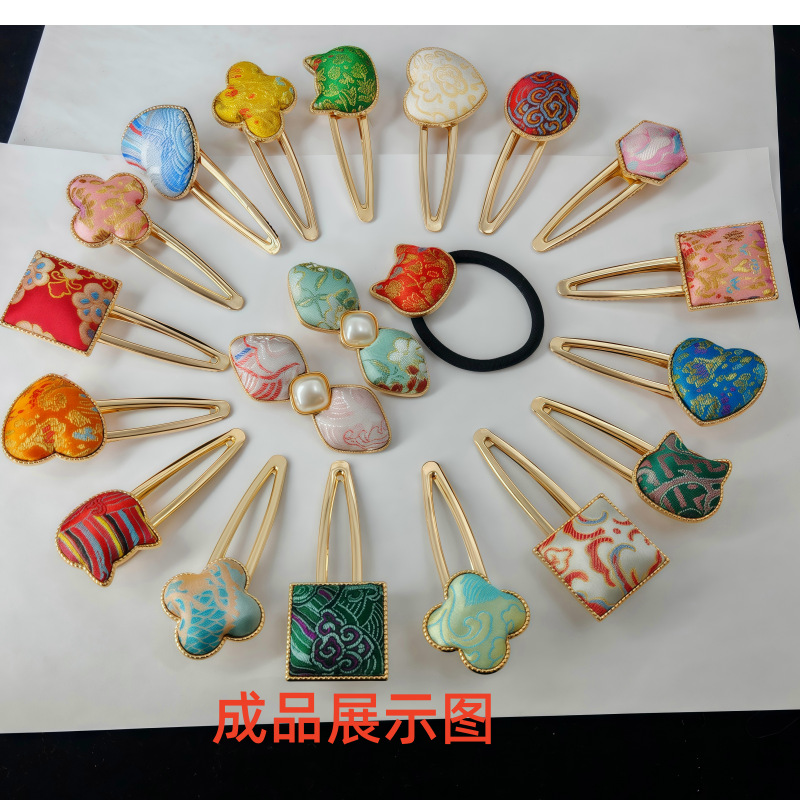 Yizan ジュエリー DIY 宋錦ヘアピンベースカバー布アートカモノハシクリップ中国風の頭飾りヘアアクセサリー材料