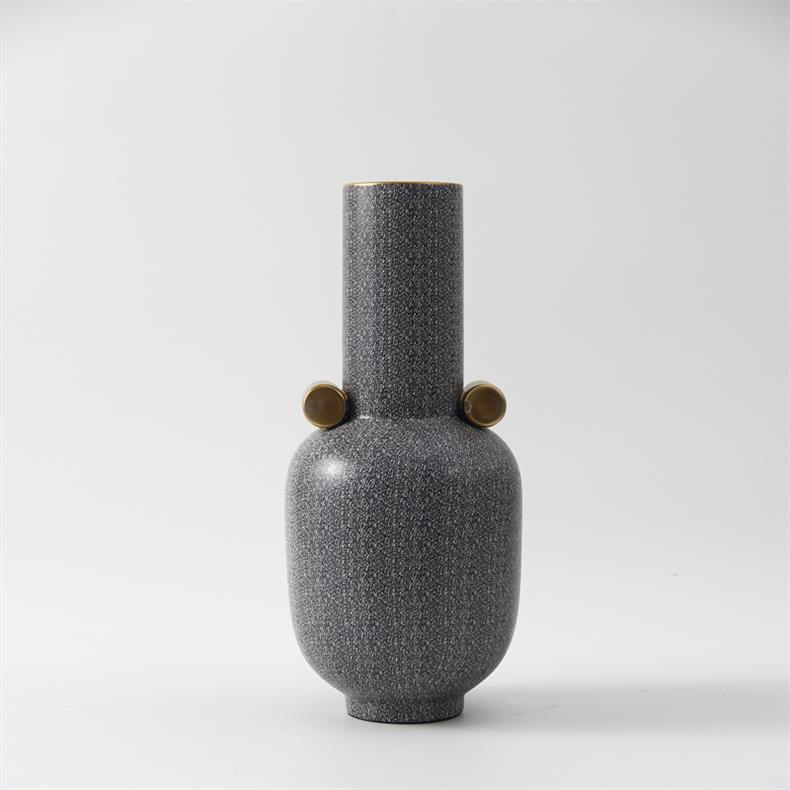 モダンでシンプルなモデルルームホテルストアハイエンドセラミックフラワーアレンジメントクリエイティブファッションブラック花瓶装飾品
