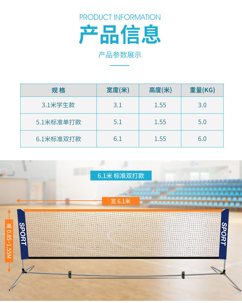 3.1m 耐久性のあるテニスネット、ブラケットなし,4.1m 耐久性のあるテニスネット、ブラケットなし,5.1m 耐久性のあるテニスネット、ブラケットなし,6.1m 耐久性のあるテニスネット、ブラケットなし,3.1m 鉄パイプテニスネットフレーム高さ固定、ギフトパッケージ,4.1m 鉄パイプテニスネットフレーム高さ固定、ギフトパッケージ,5.1m 鉄パイプテニスネットフレーム高さ固定、ギフトパッケージ,6.1m 鉄パイプテニスネットフレーム高さ固定、ギフトパッケージ,3.1m ステンレス鋼の高さ調節可能なテニスネットスタンドギフトパック,4.1m ステンレス鋼の高さ調節可能なテニスネットスタンドギフトパック,5.1m ステンレス鋼の高さ調節可能なテニスネットスタンドギフトパック,6.1m ステンレス鋼の高さ調節可能なテニスネットスタンドギフトパック,6.9m ステンレス鋼の高さ調節可能なテニスネットスタンドギフトパック