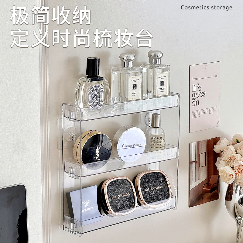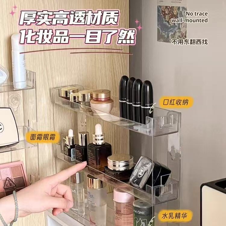 壁挂化妆品收纳盒透明多层展示架加宽梳妆台香水口红护肤品置物架