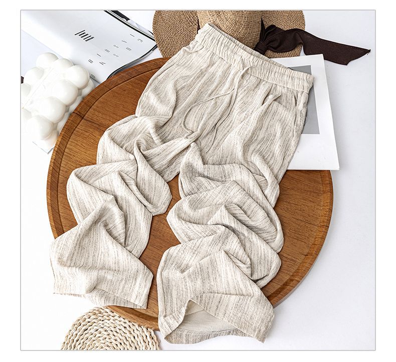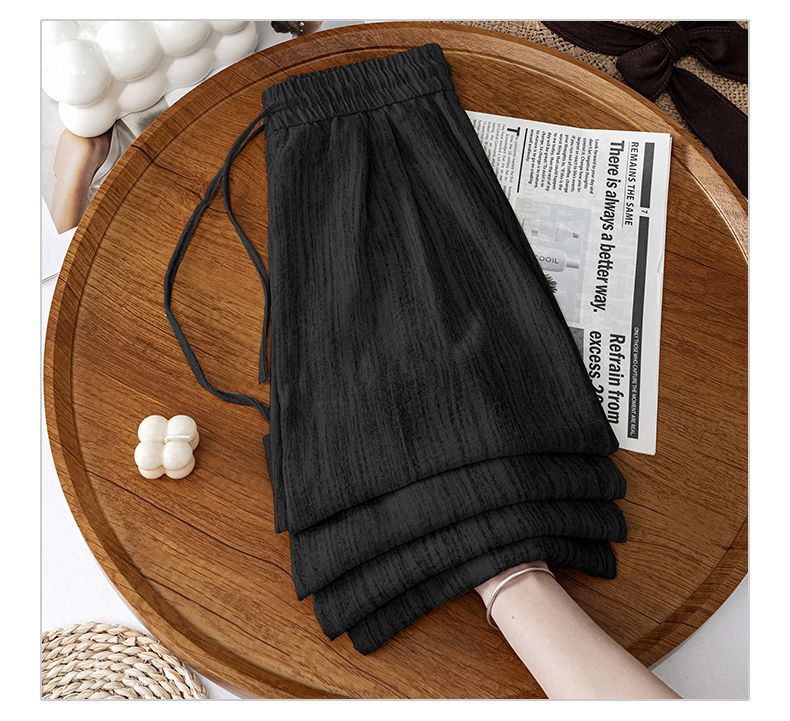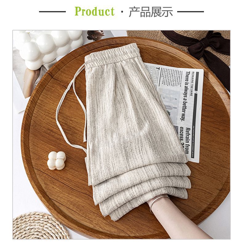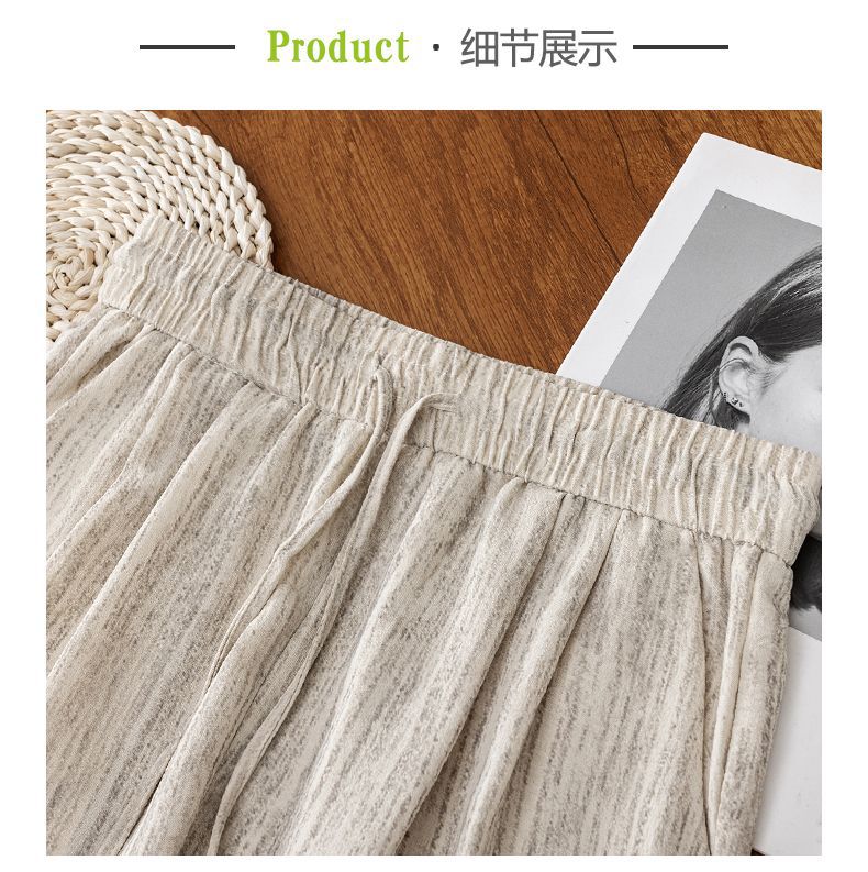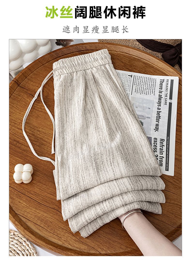 女性用夏カジュアルアイスシルクワイドレッグパンツ、韓国風タイダイドレープレースアップウエストゴム、小柄な人向けのゆったりとした日焼け止めパンツ、トレンディ