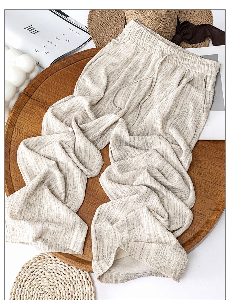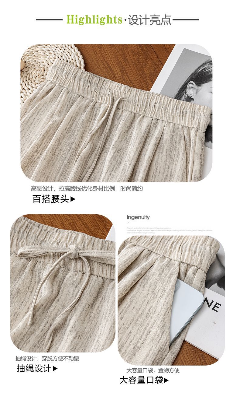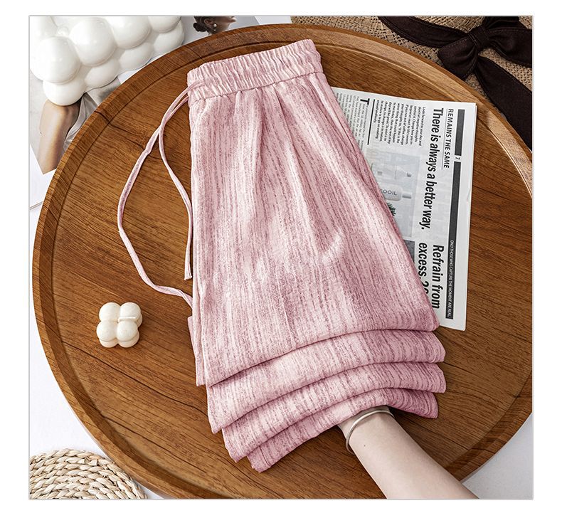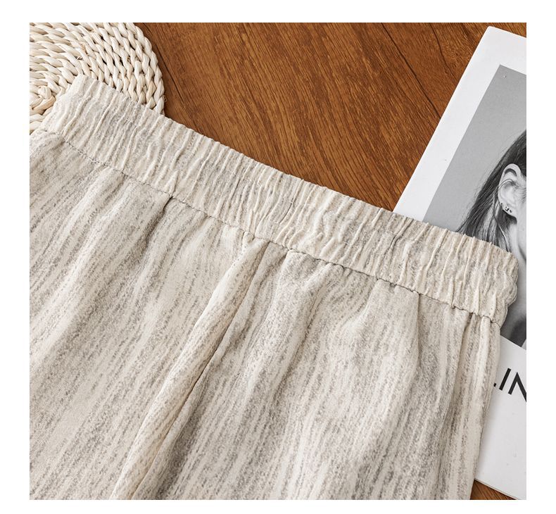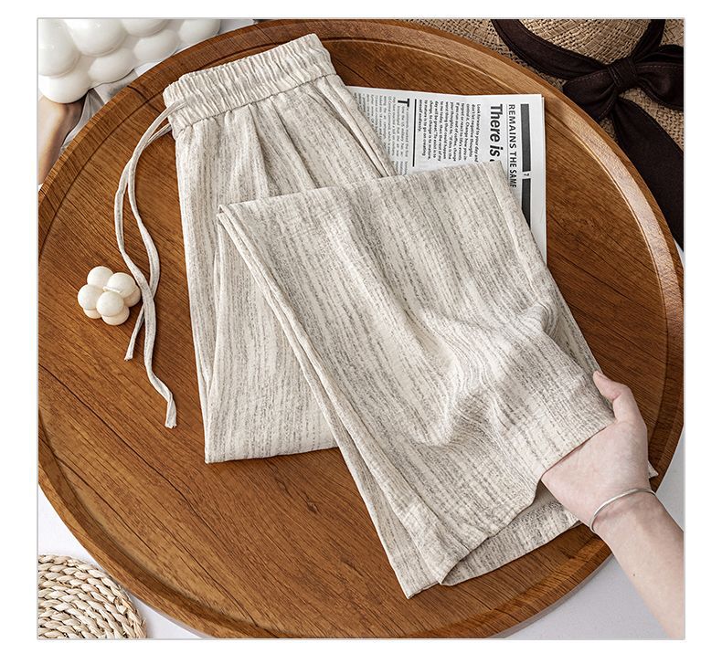 女性用夏カジュアルアイスシルクワイドレッグパンツ、韓国風タイダイドレープレースアップウエストゴム、小柄な人向けのゆったりとした日焼け止めパンツ、トレンディ