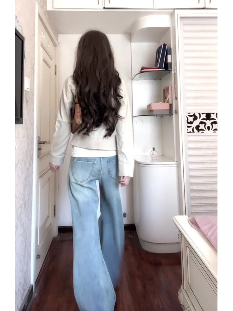 洋梨型体型の女性のためのカジュアルな白いワイドレッグジーンズ2025新しいハイウエストルーズ秋冬ドレープストレートパンツ