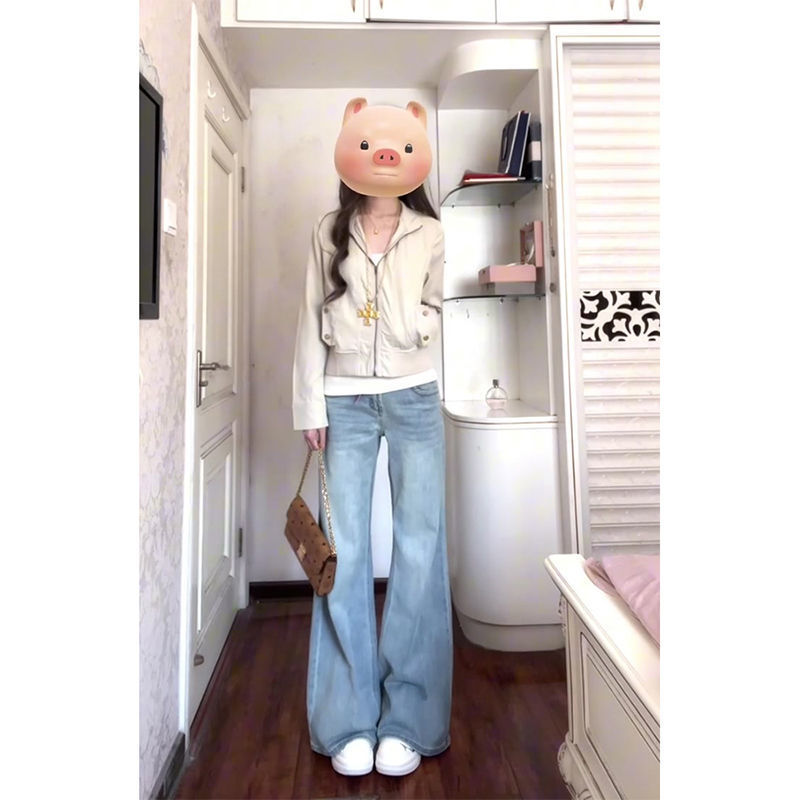 女性用ライトブルーウォッシュハイウエストマイクロフレアジーンズ、春、小柄、ゆったり、スリム、多用途、年齢を軽減する馬蹄パンツ