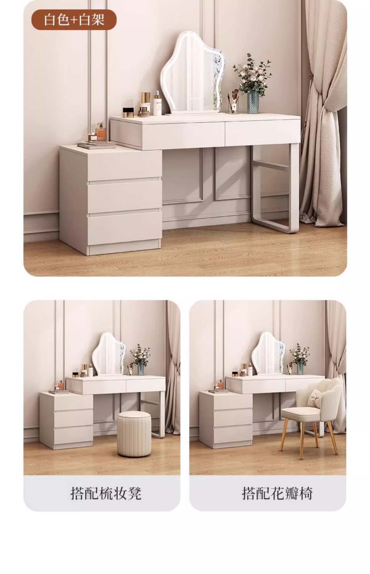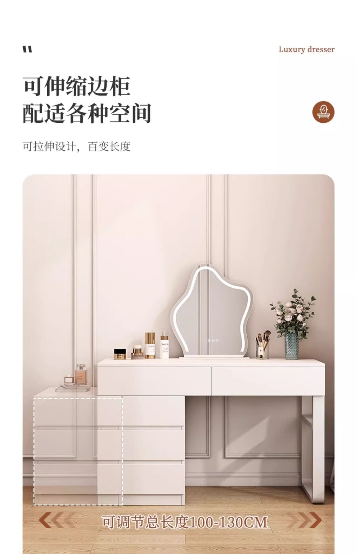 実木化粧台クリーム風伸縮可能現代シンプル家庭用寝室収納キャビネット一体寝室化粧机