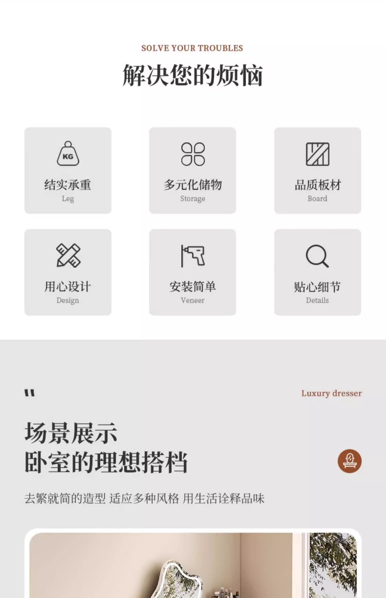 奶油风网红实木梳妆台卧室皮质现代简约化妆桌收纳斗柜一体化妆台