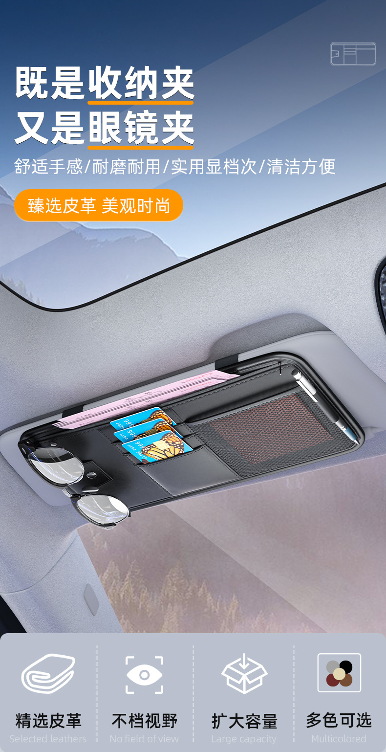 汽车遮阳板收纳神器多功能挡光板眼镜包卡片驾驶证件夹车载收纳套